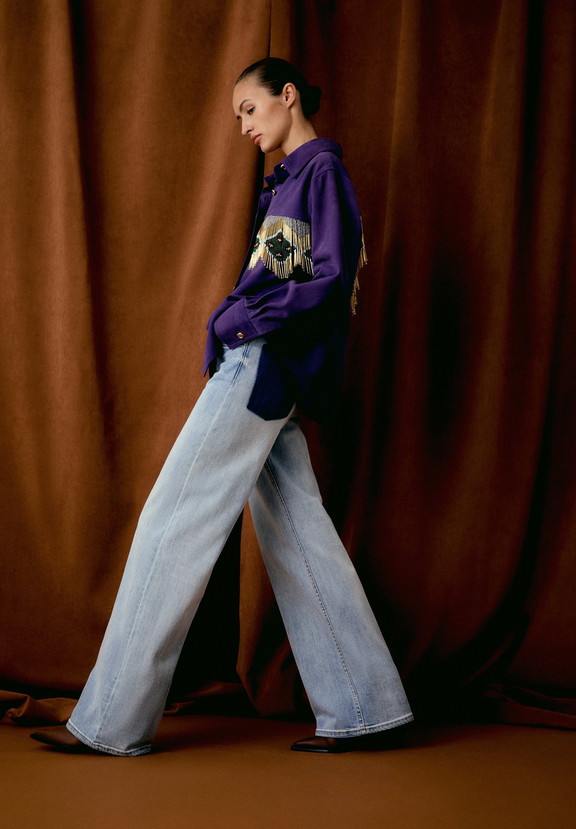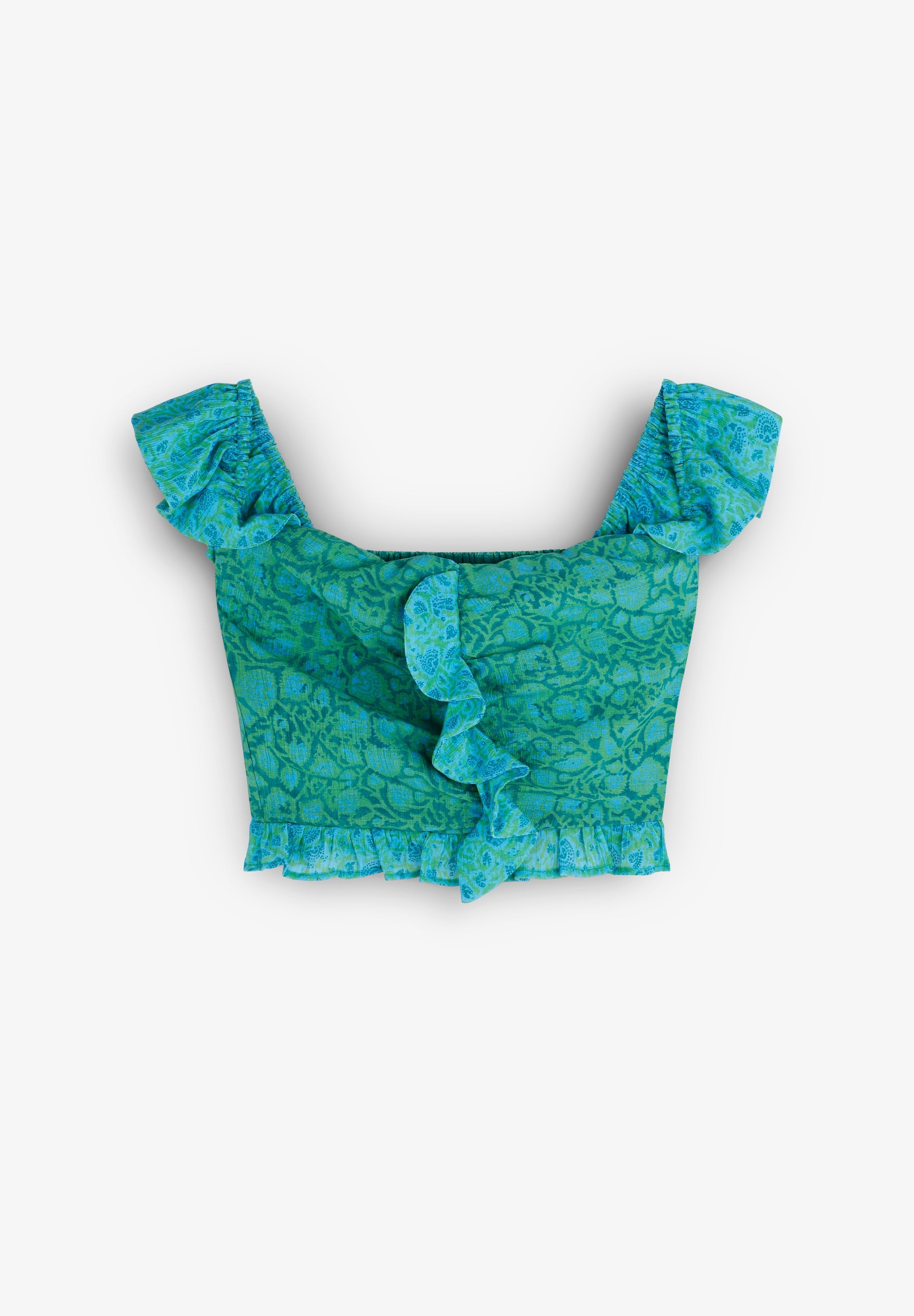 METALLIC THREAD BLOUSE WITH RUFFLES
