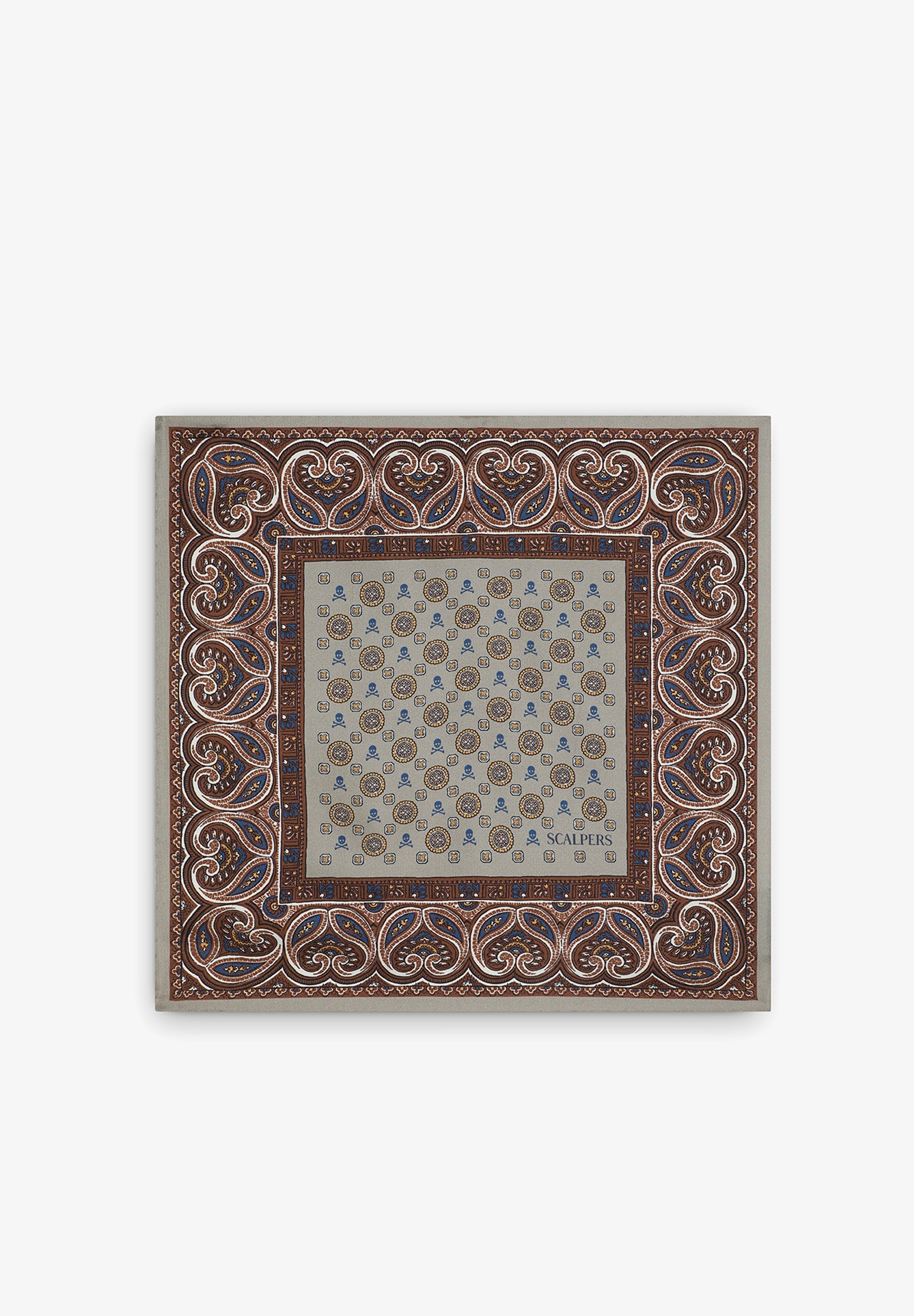 SILK PAISLEY SKULL PRINT POCKET SQUARE