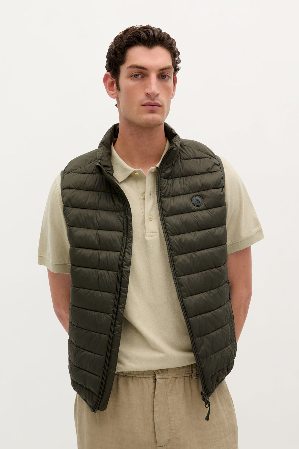 - Pasvorm slim fit, opstaande hals en sluiting met tweewegrits.