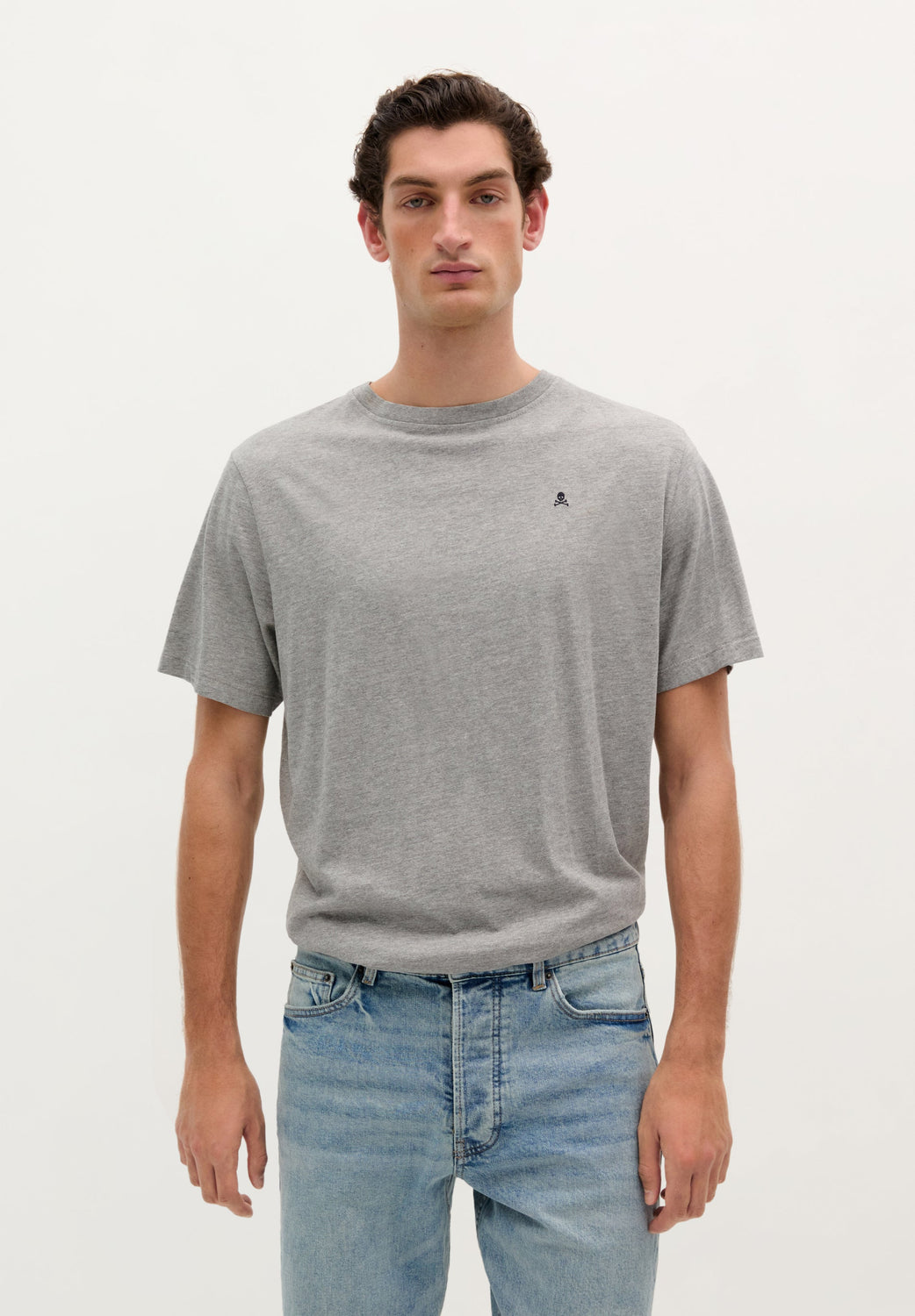 Basic T-shirt met geborduurd doodskopje.