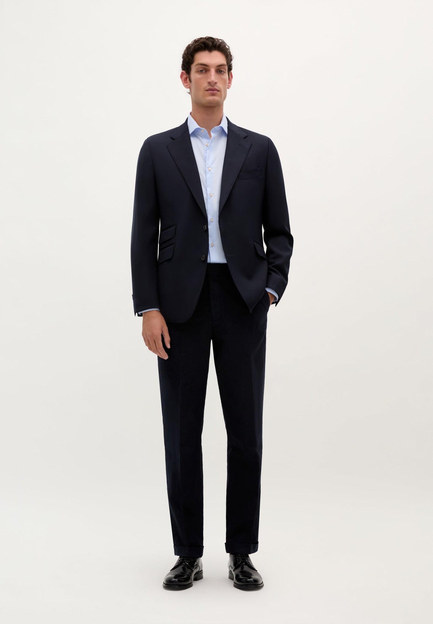 Jack gemaakt van 100% wol. Enkele knoopsluiting. Haakrevers. Borstzak met knoopsgat, zijzakken met kleppen. Opening aan de achterkant.