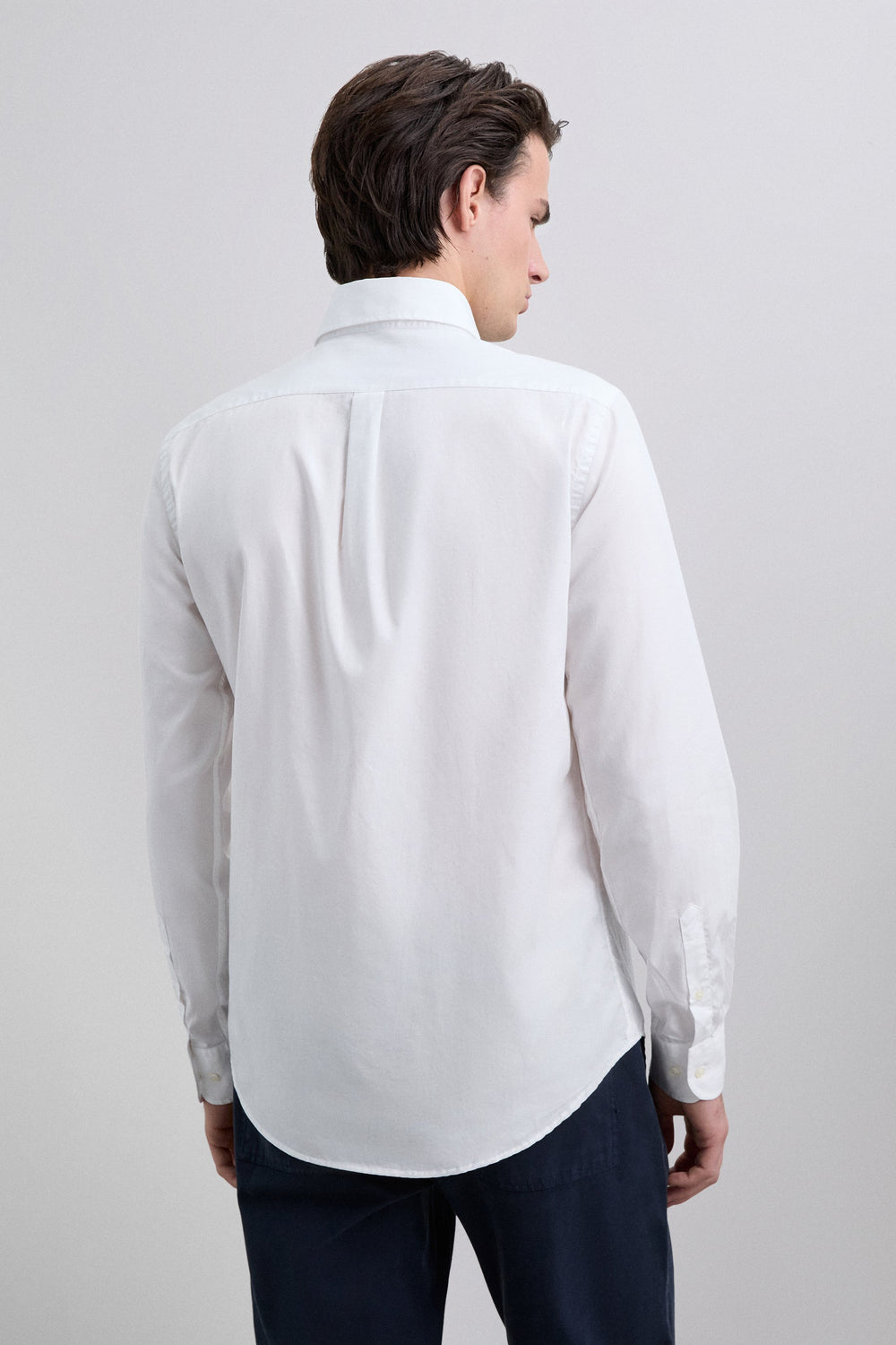 Shirt made of 100% organic BCI cotton. Long sleeves. Adjustable button cuffs. Embroidered logo. Front button fastening. Made in Portugal.