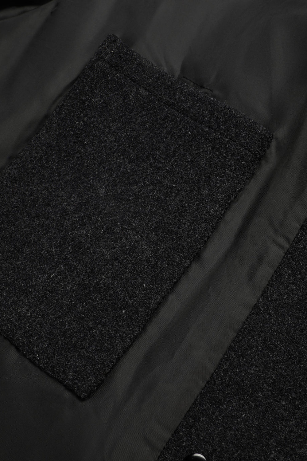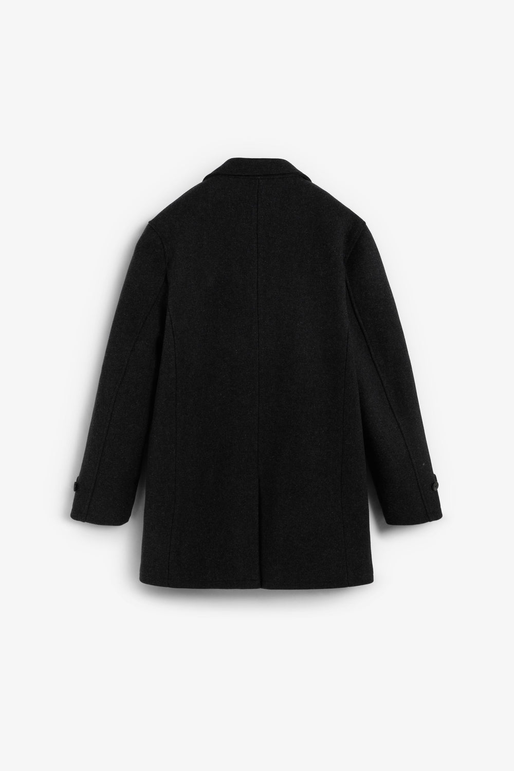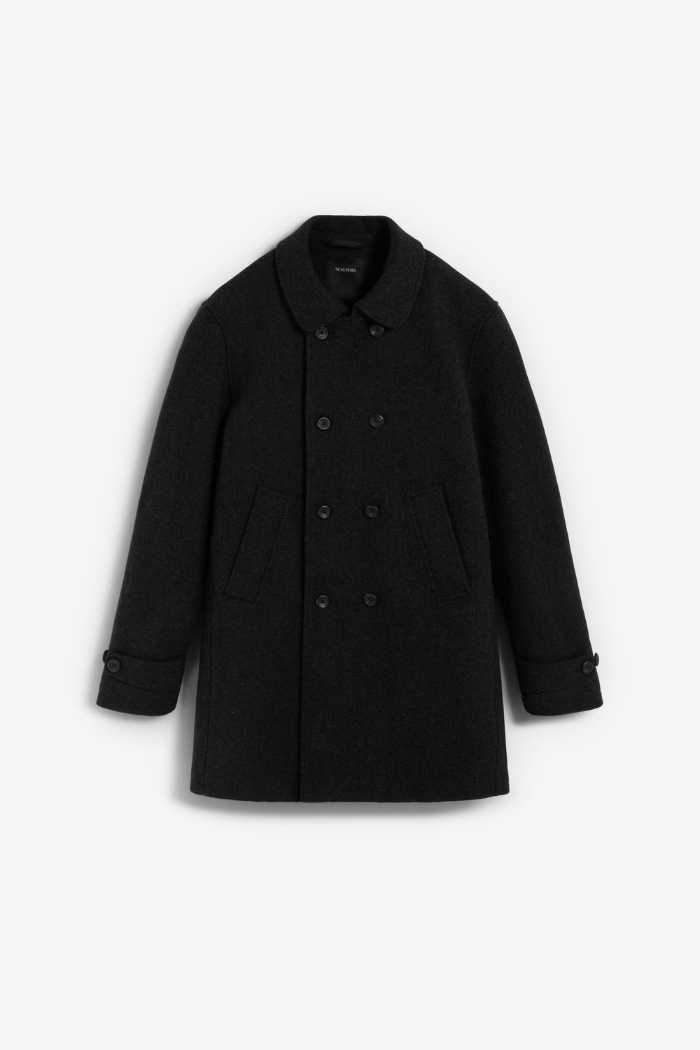 Double-breasted coat in a wool blend. Button-up front. Front slanted piped pockets. Inner pocket. Cuff detail with tabs.