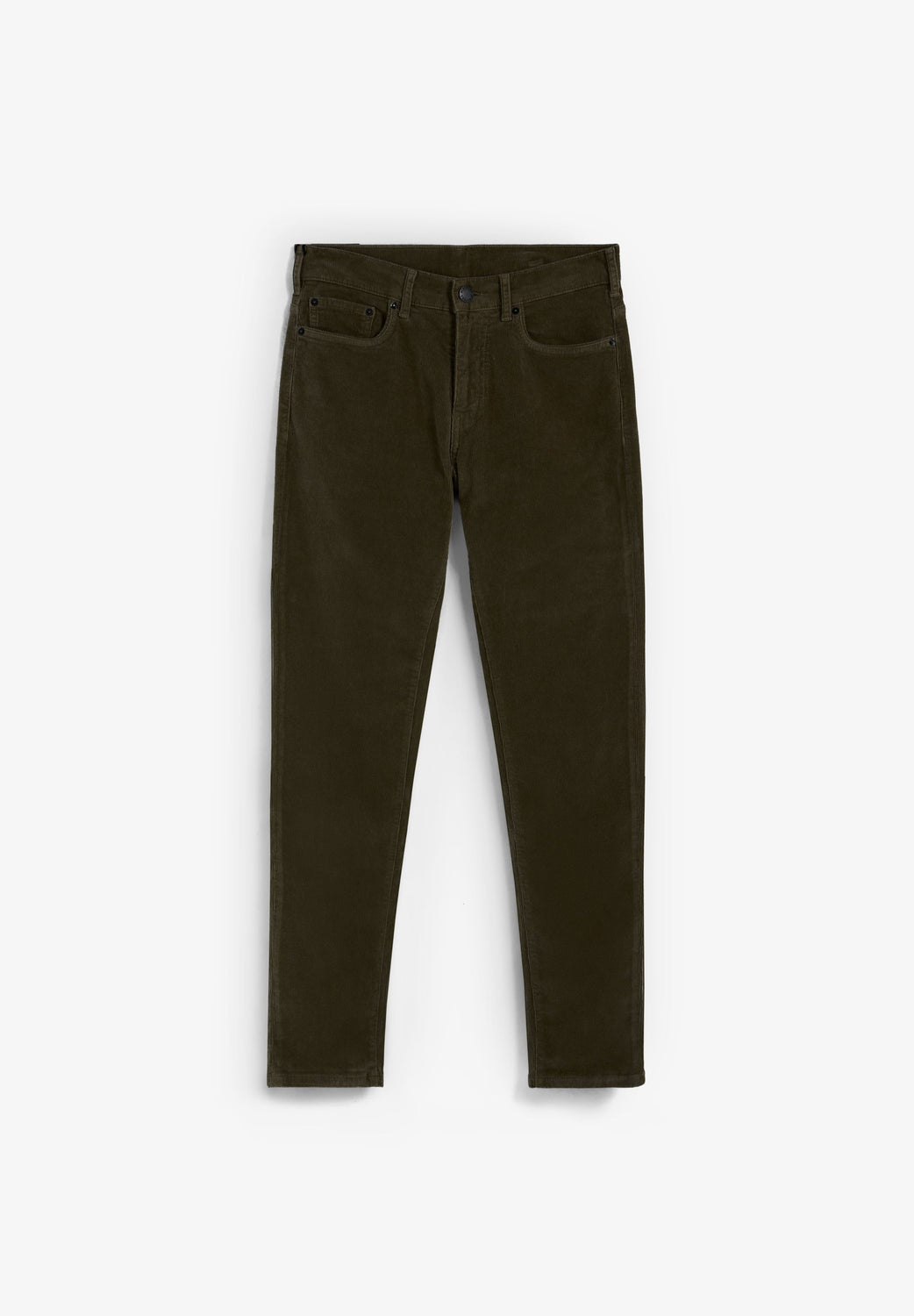 Trousers made of BCI cotton. Slightly stretchy. Button and zip fastening. Regular fit. Side and back pockets. Belt loops. Label detail on the back.