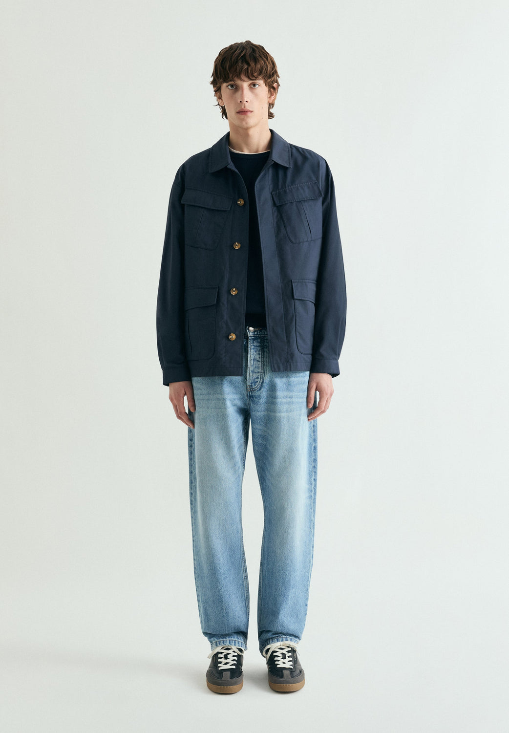 Regular fit jeans. Five pockets. Faded effect. Belt loops at the waist. Front zip and button fastening.