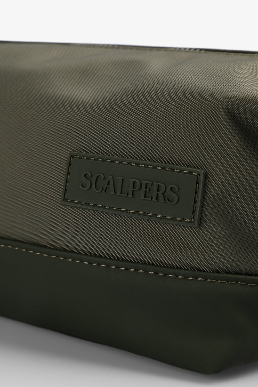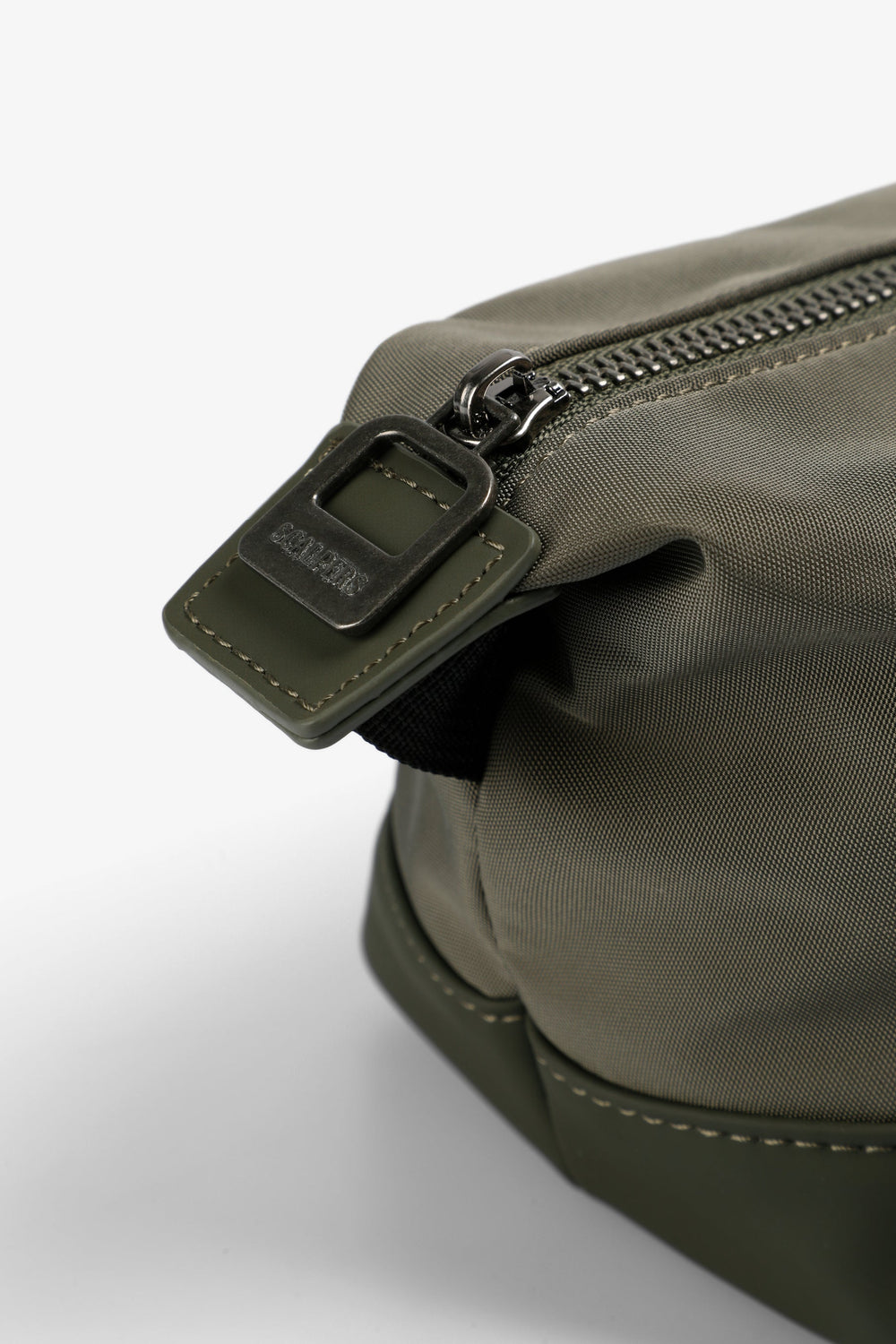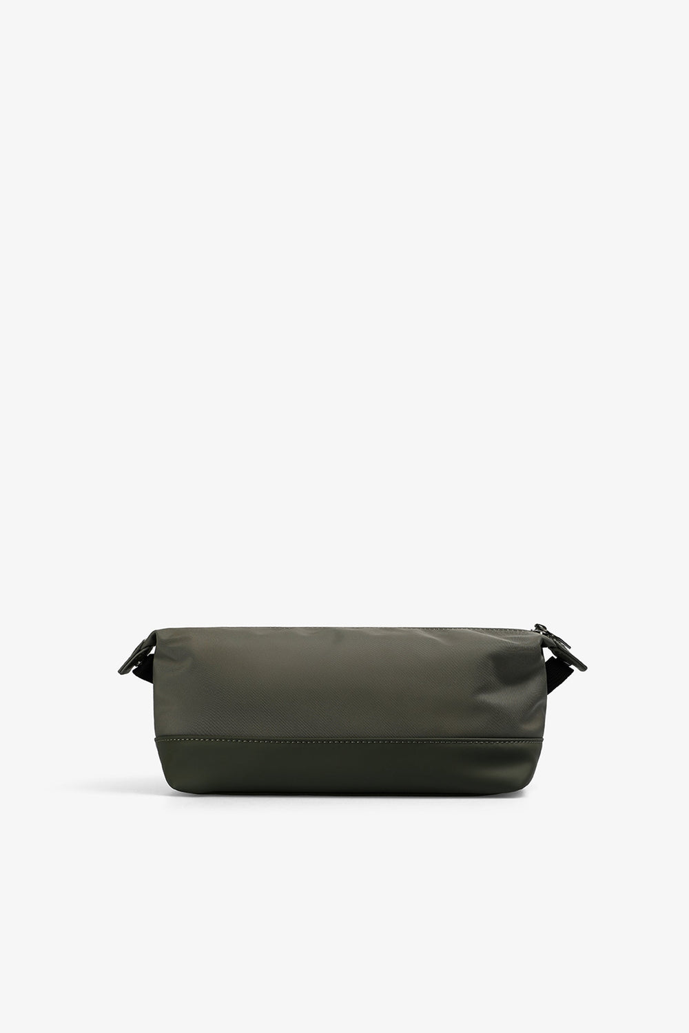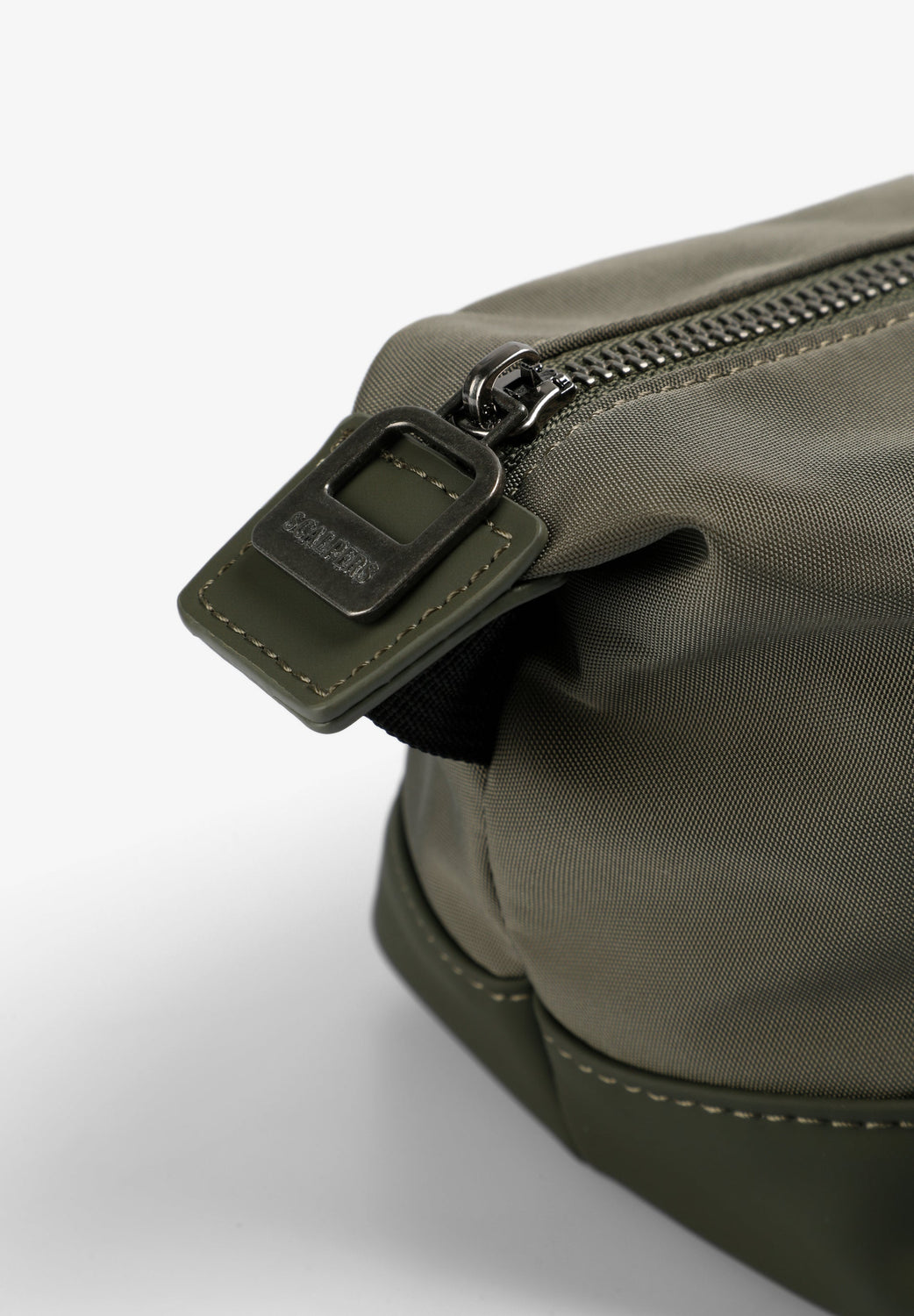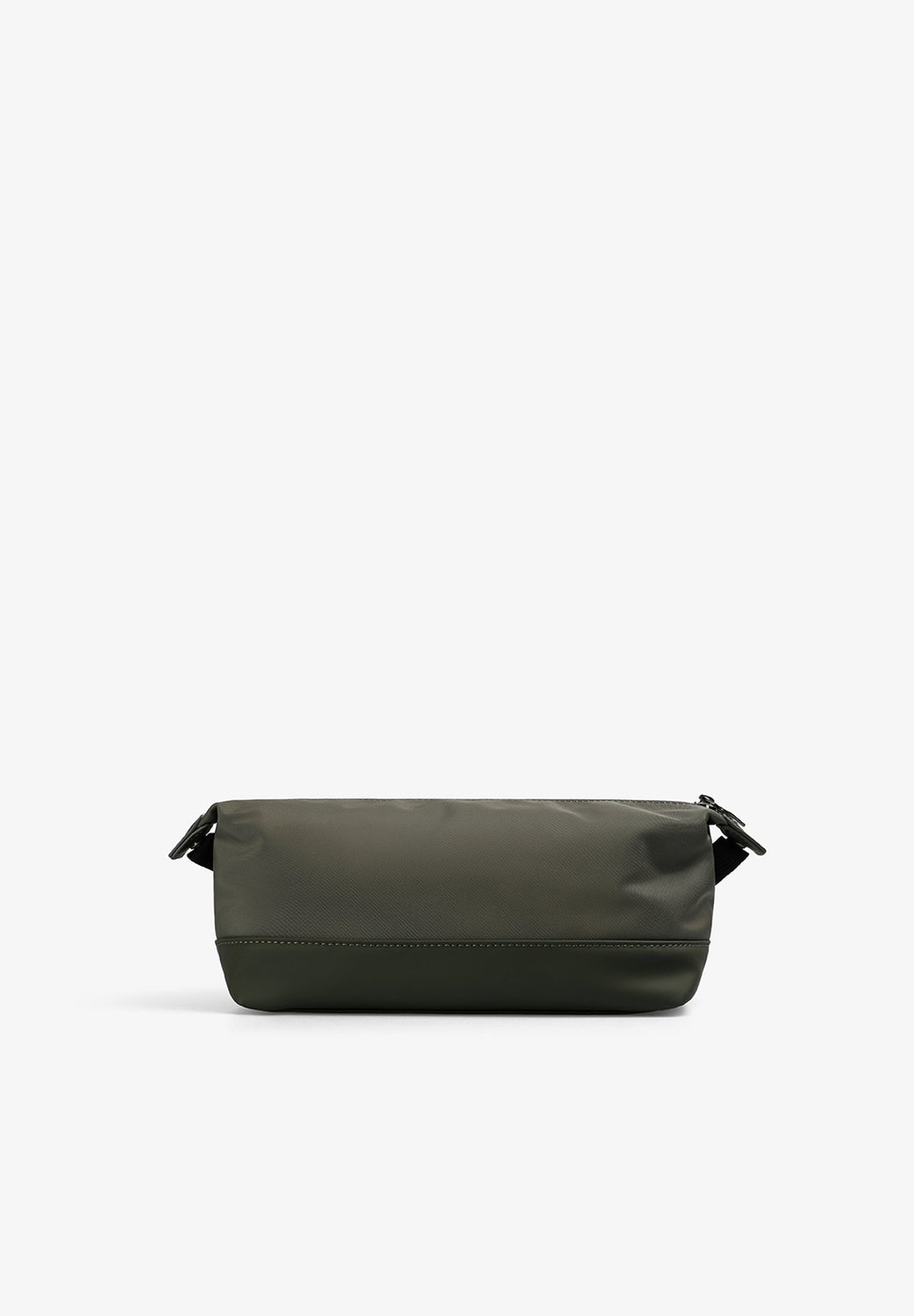 Toiletry bag made of PU. Side handles. Customised zip. Rubberised patch on the front.