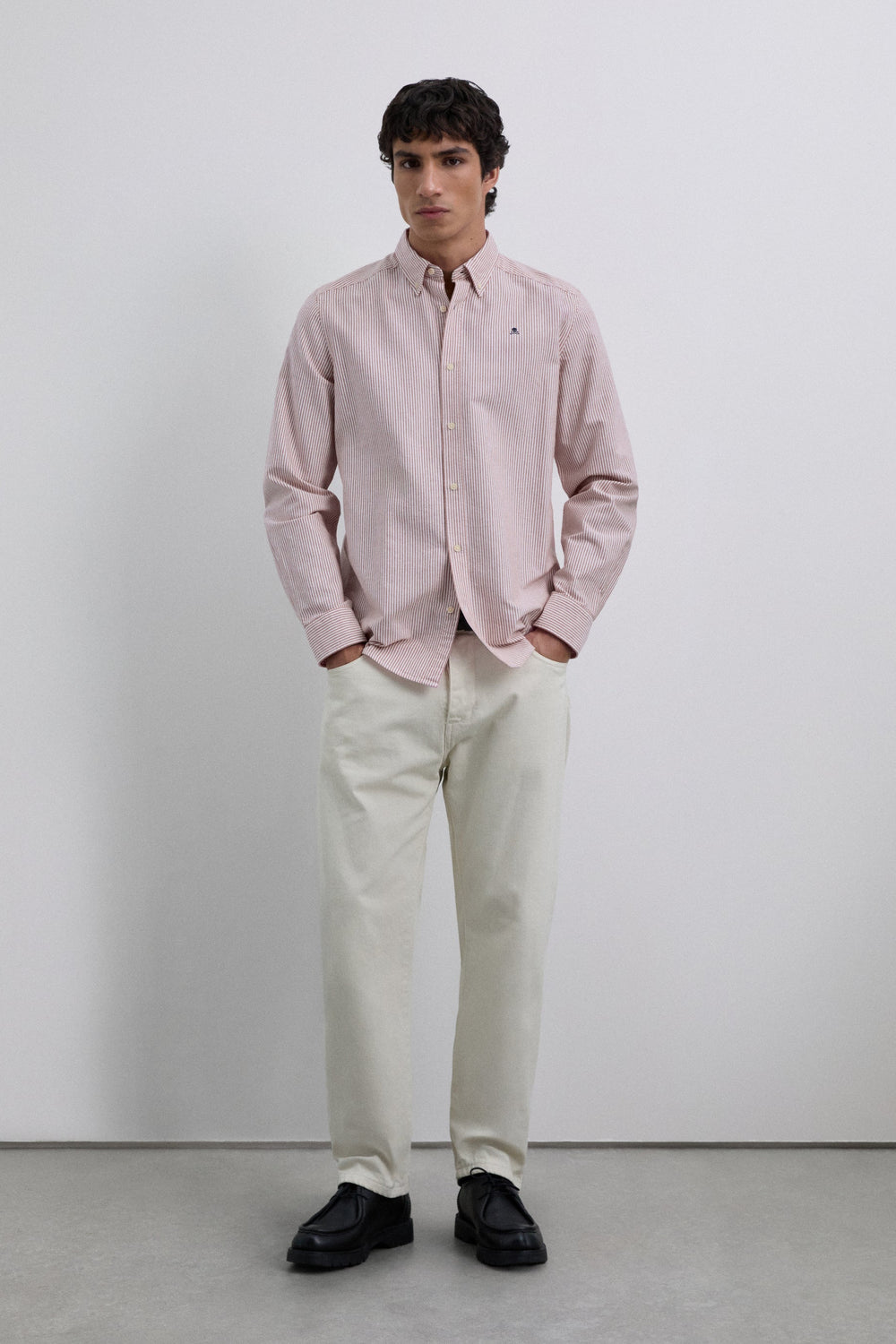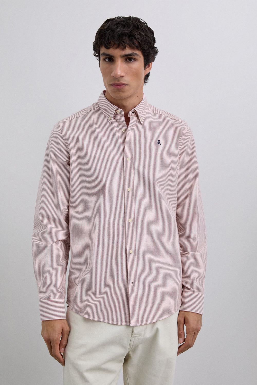 Oxford shirt made of 100% BCI cotton. Button fastening, Striped print. Long sleeves with button fastening. Contrast embroidered skull detail on the chest.