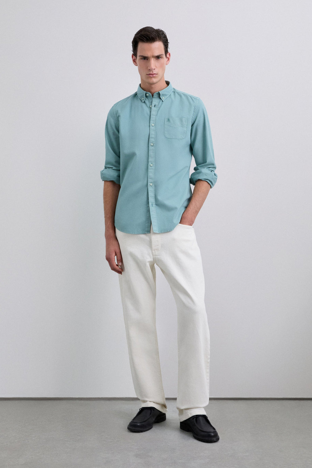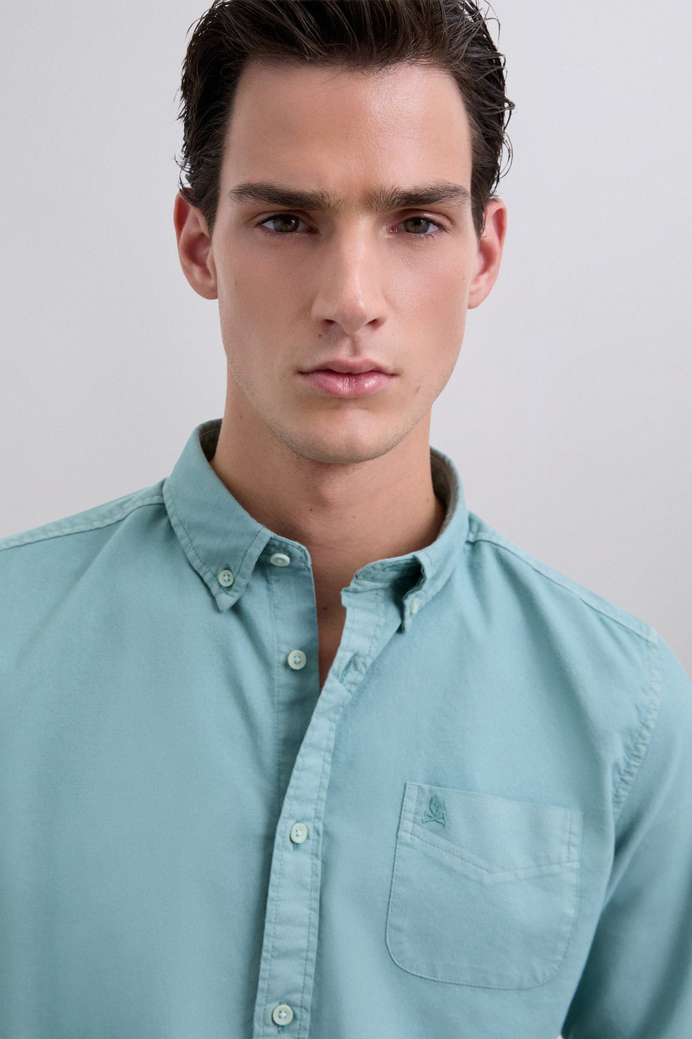 Shirt made of 100% BCI cotton. Regular fit. Matching embroidered skull detail on the chest. Buttoned collar. Long sleeves with buttoned cuffs. Patch pocket on the chest. Front button fastening.