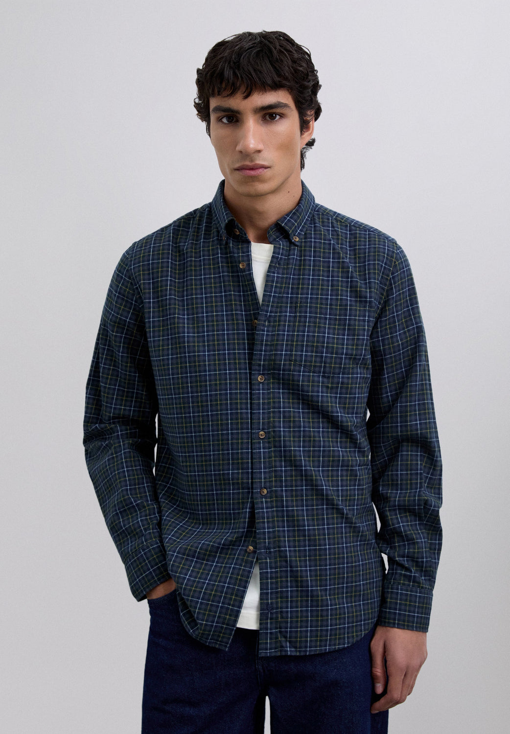 Shirt made of 100% BCI cotton. Tartan print. Regular fit. Buttoned collar. Long sleeves. Buttoned cuffs. Chest pocket.
