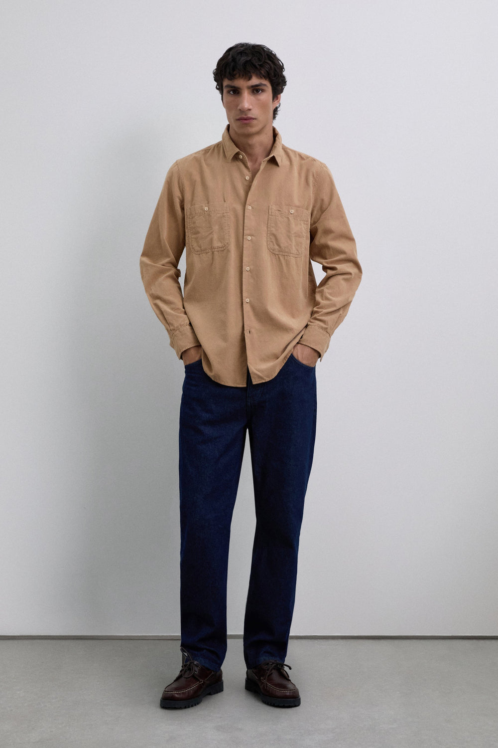 Shirt made of 100% BCI cotton corduroy. Regular fit. Long sleeves with buttoned cuffs. Patch chest pockets. Front button fastening.