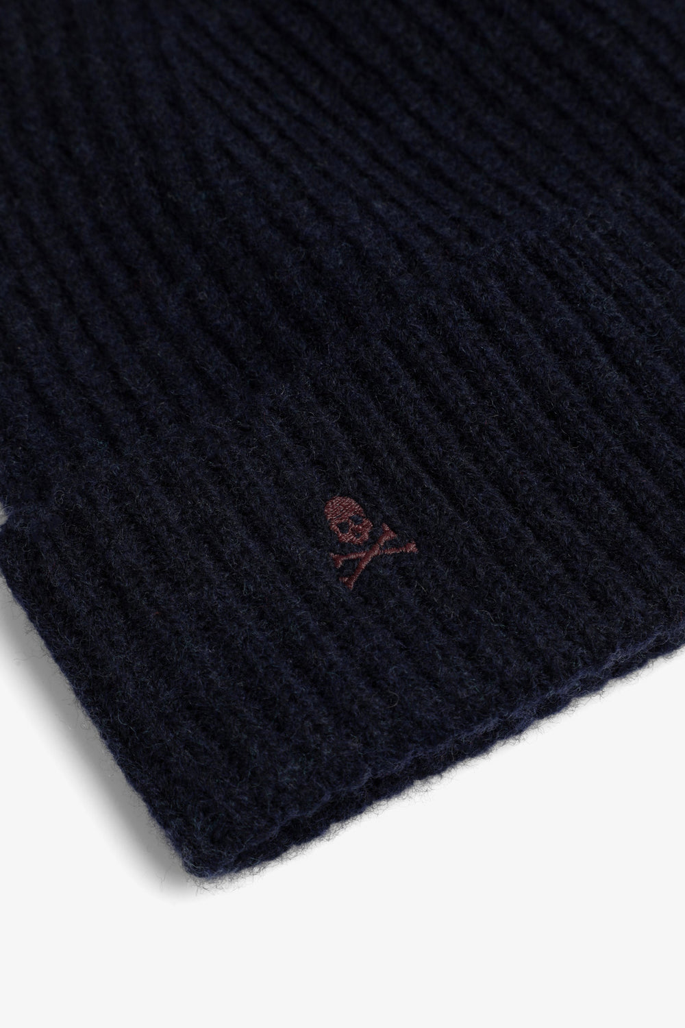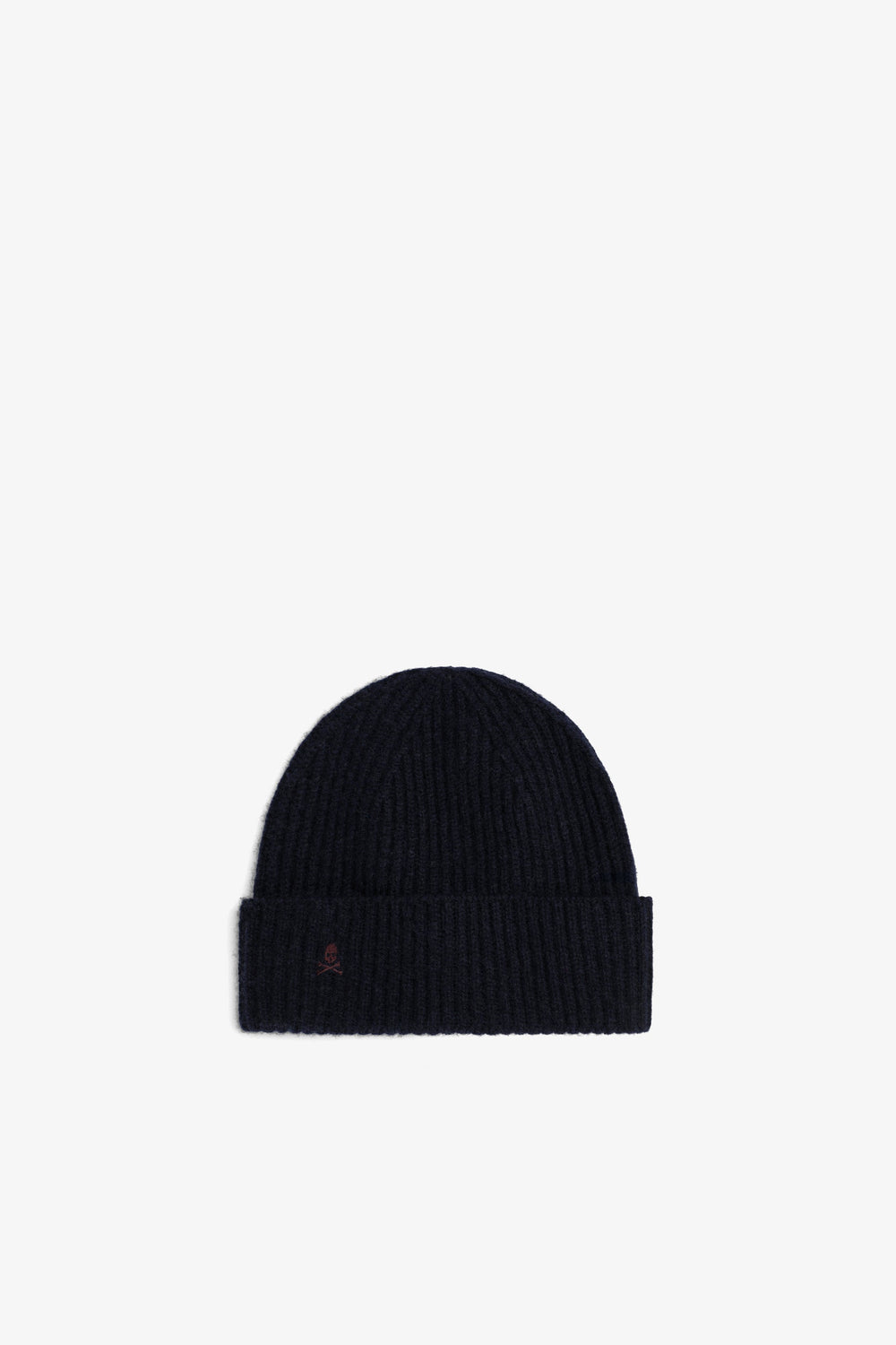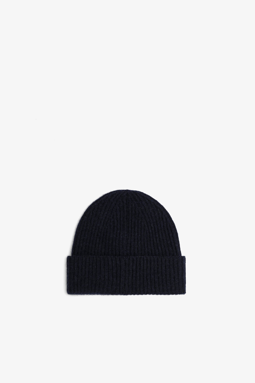 Knitted hat made of a wool and cashmere blend. Finished with a cuff. Contrast logo embroidery on cuff.