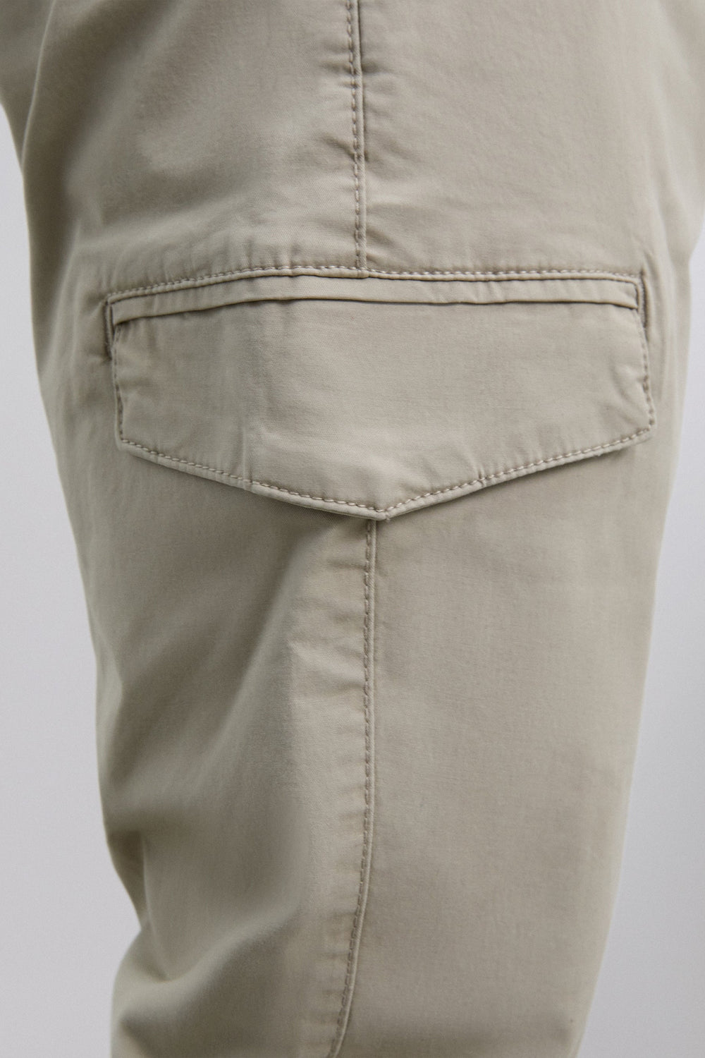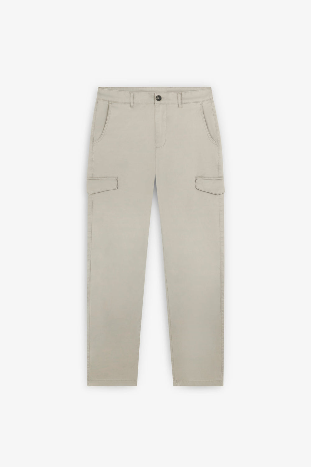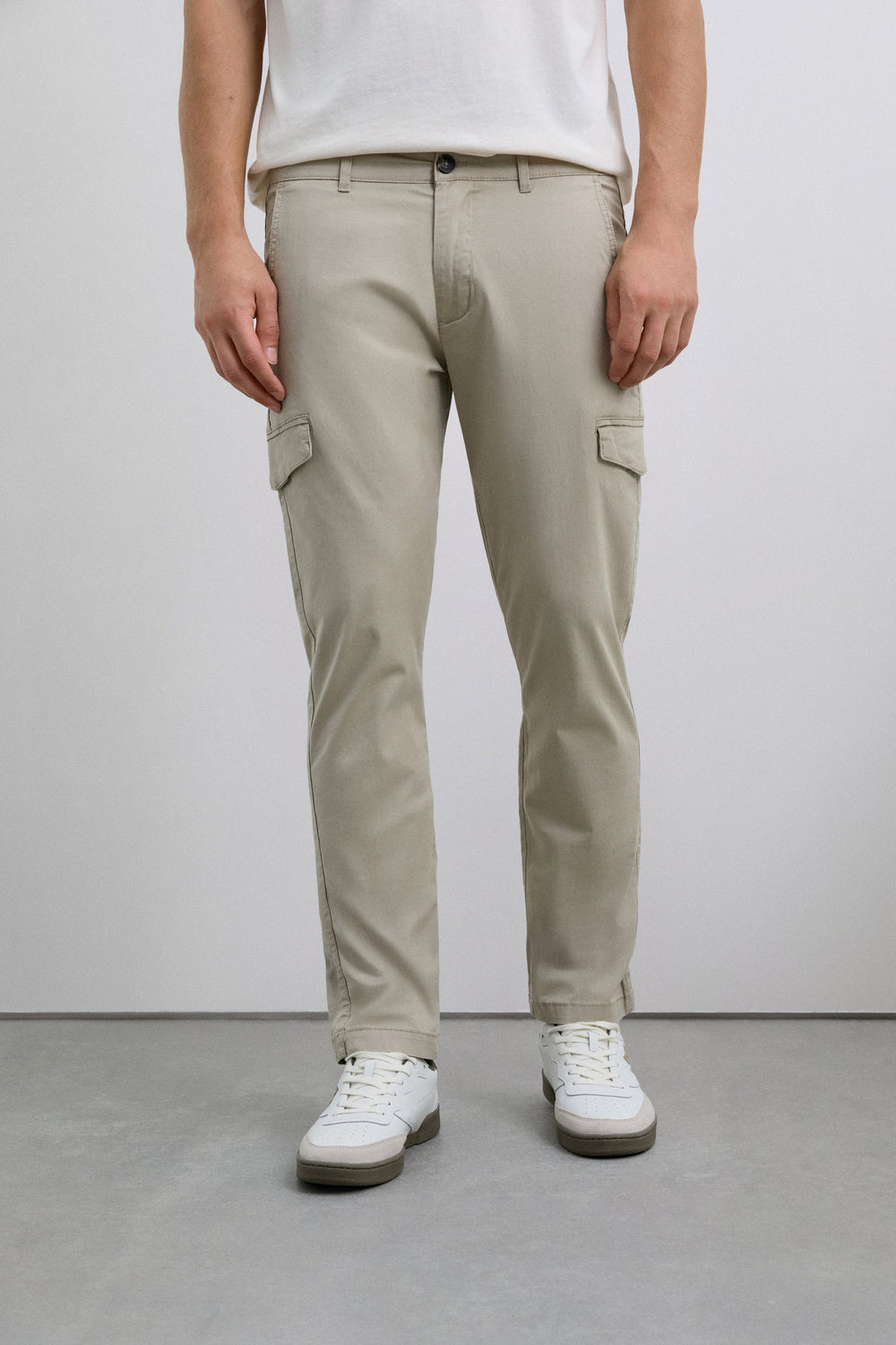 Cargo trousers made of BCI cotton. Slim fit. Two front pockets, back pockets with button fastening and side flap pockets. Belt loops and button and zip fastening. Embroidered logo on the back pocket.