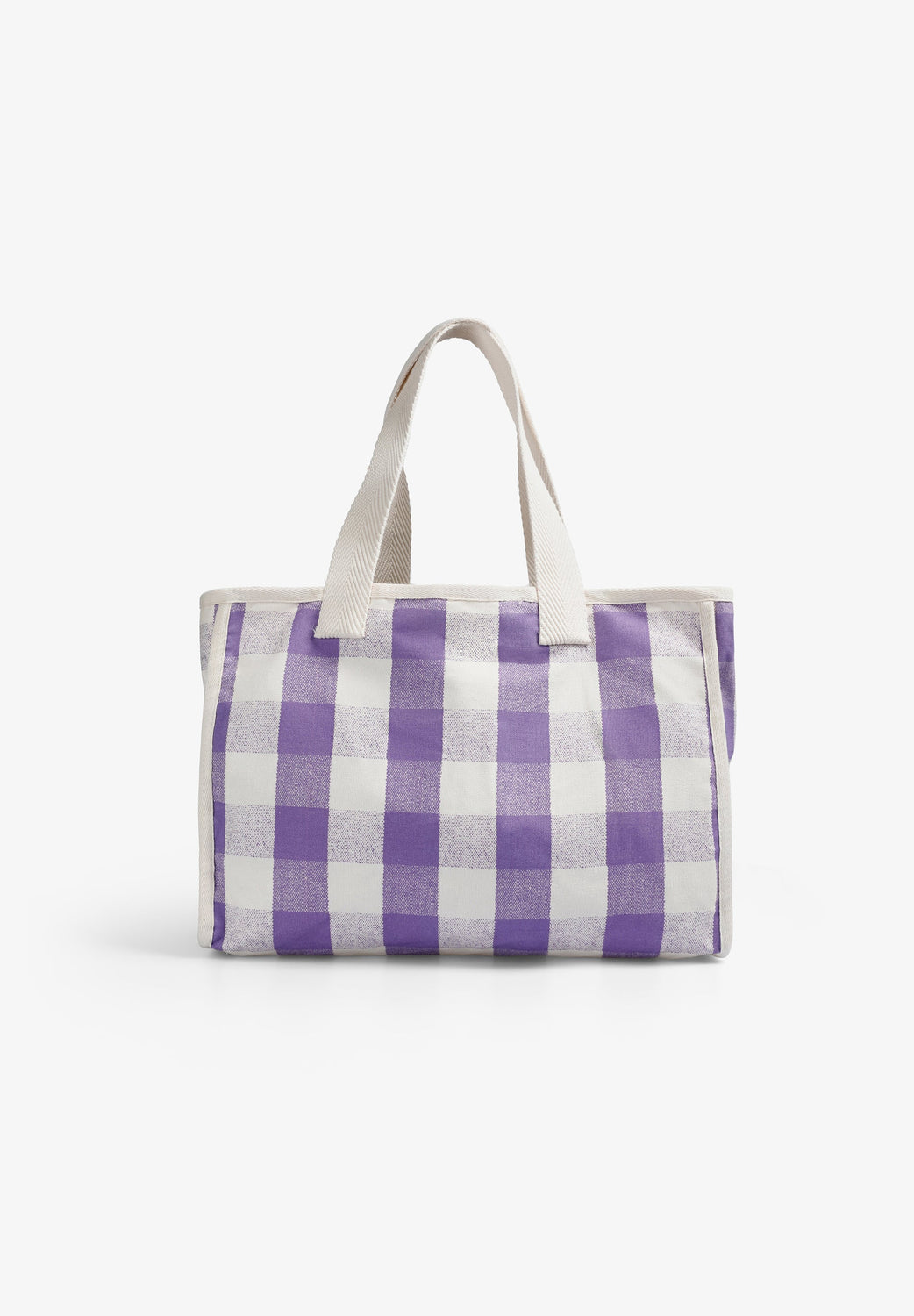 Tote bag made of 100% cotton. Double strap. Front label with logo and skull. Checked print