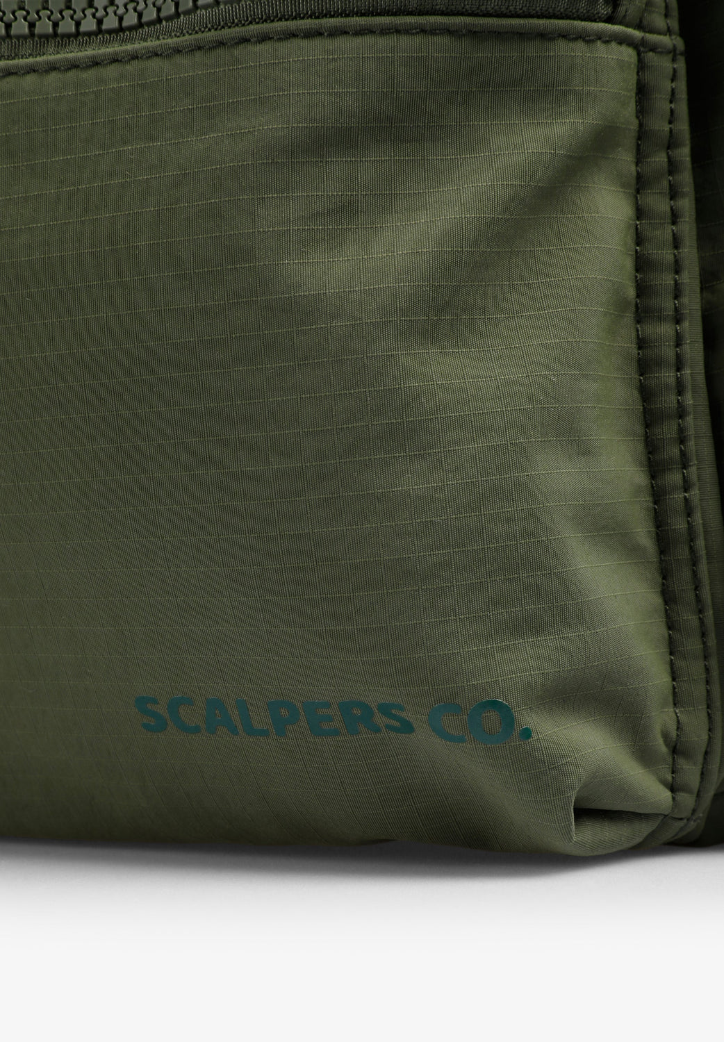 Synthetic backpack with front skull. Zip fastening. Back straps. Top handle. Front zipped pocket.