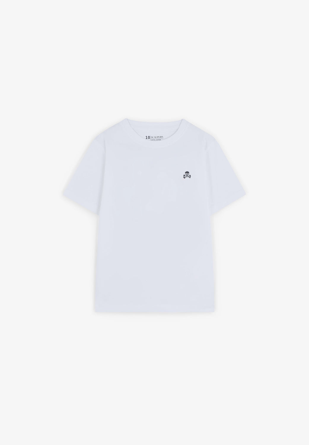 T-shirt made of 100% BCI cotton. Regular Fit. Short sleeve. Contrast embroidered skull on the chest. Print and embroidered motifs on back. Round neck.