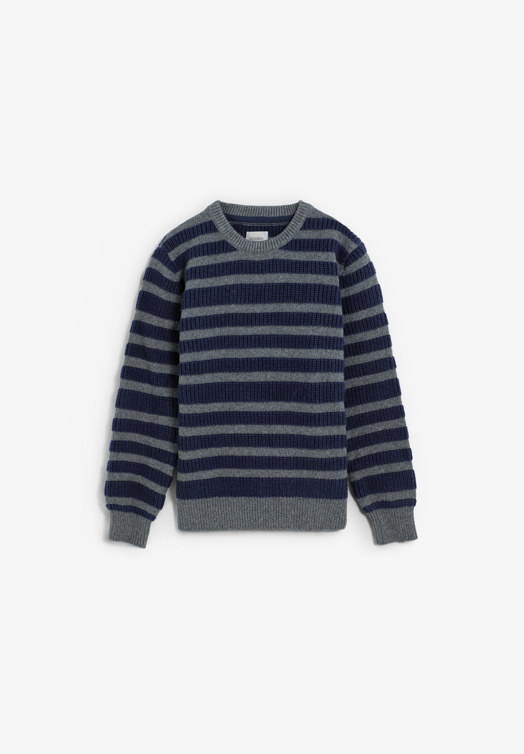 Sweater made of 100% BCI cotton. Stripe print. Round neck. Long sleeves. Ribbed trim.