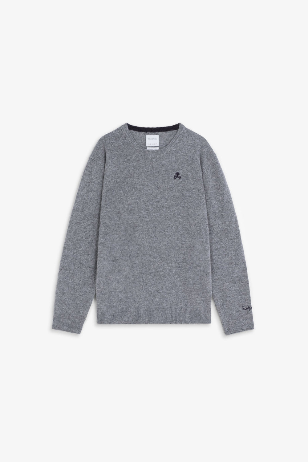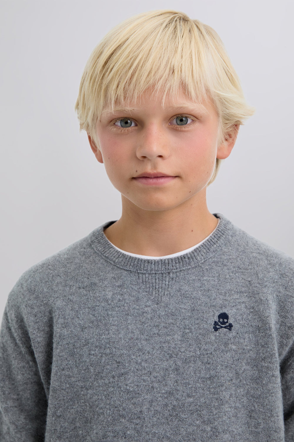 Sweater made of wool and polyamide blend. Regular fit. Round neck. Long sleeves. Contrast embroidered skull detail. Ribbed trim. Skull patch detail on the elbow pads.