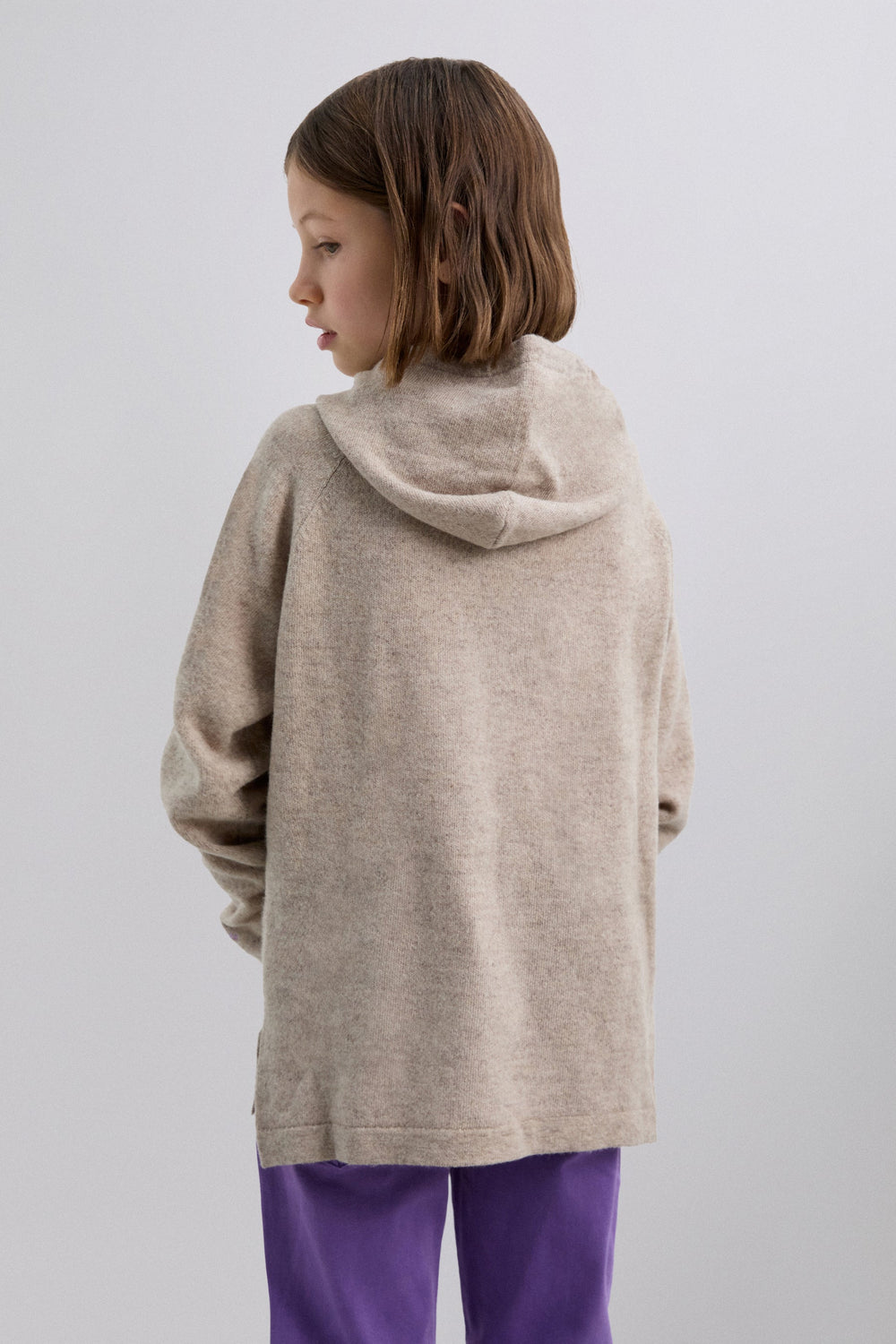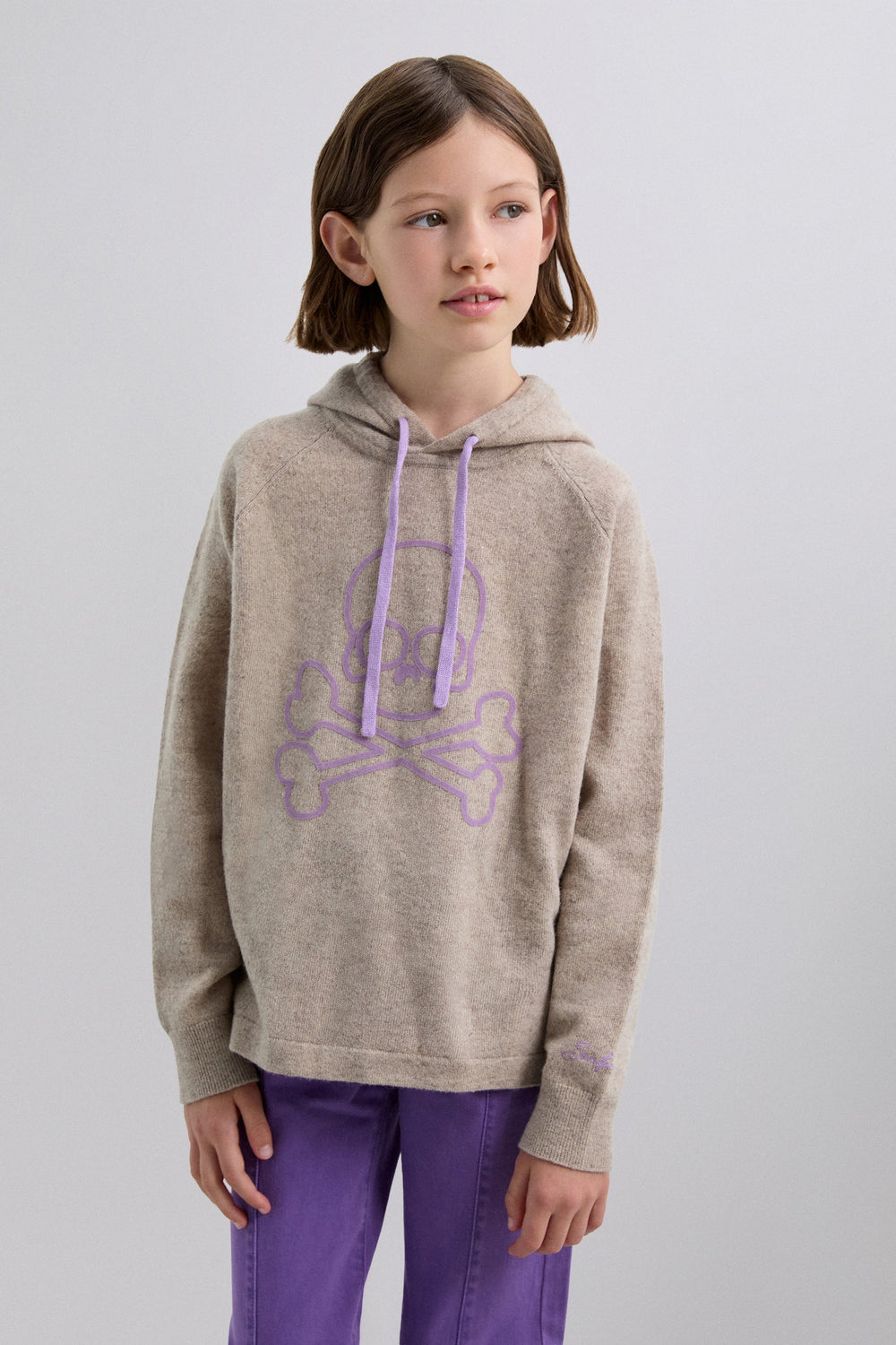 Sweater with adjustable hood. Contrast skull print on front. Long sleeves.