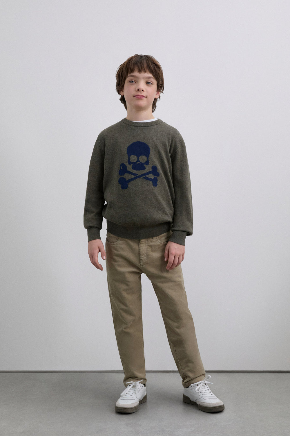 Sweater made of 100% BCI cotton. Long sleeves. Round neck. Regular fit. Contrast front skull detail.