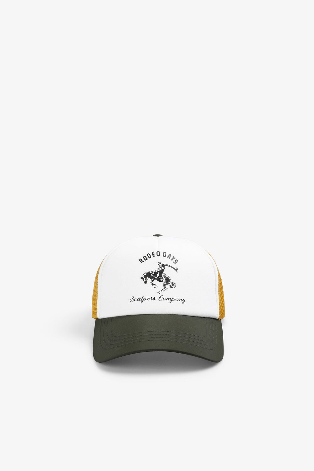 Trucker cap made of cotton blend fabric. Mesh back. Contrast visor and front logo detail.