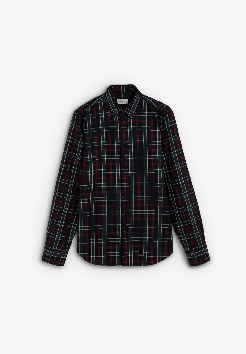 Shirt made of tartan BCI cotton. Regular fit, collar with buttons and button fastening. Long sleeves with buttoned cuffs and contrast embroidered skull on the chest.