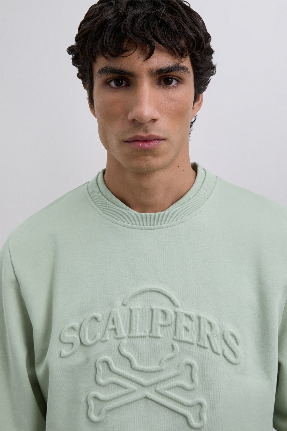 Sweatshirt made of 100% BCI cotton. Regular fit. Long sleeves. Round neck, ribbed trim on sleeves and waistband. Raised logo and skull on the front.