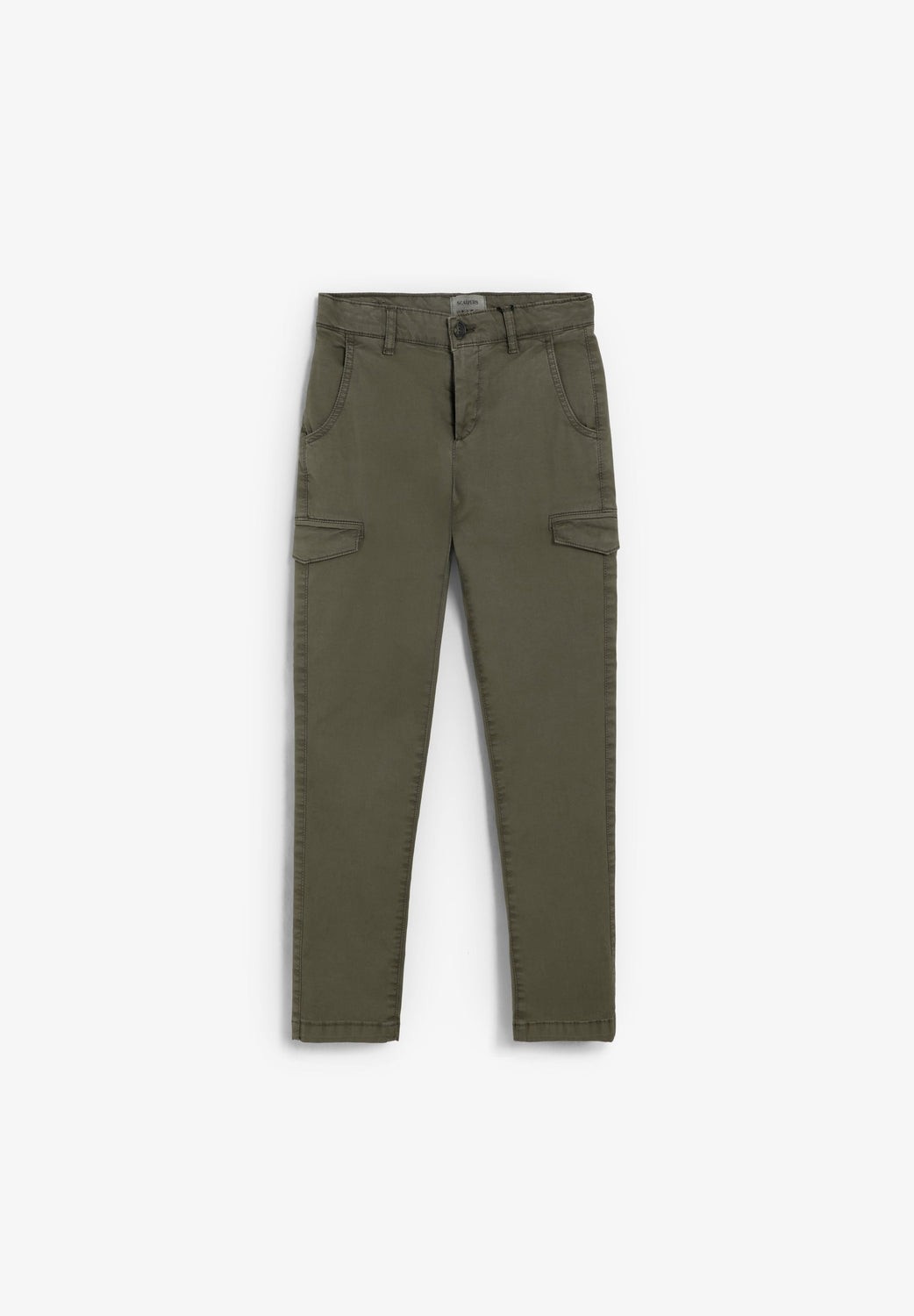 Cargo trousers made of slightly stretch BCI cotton. Regular fit, top button and zip fastening and side pockets. Belt loops at the waist and flap pockets on the leg.