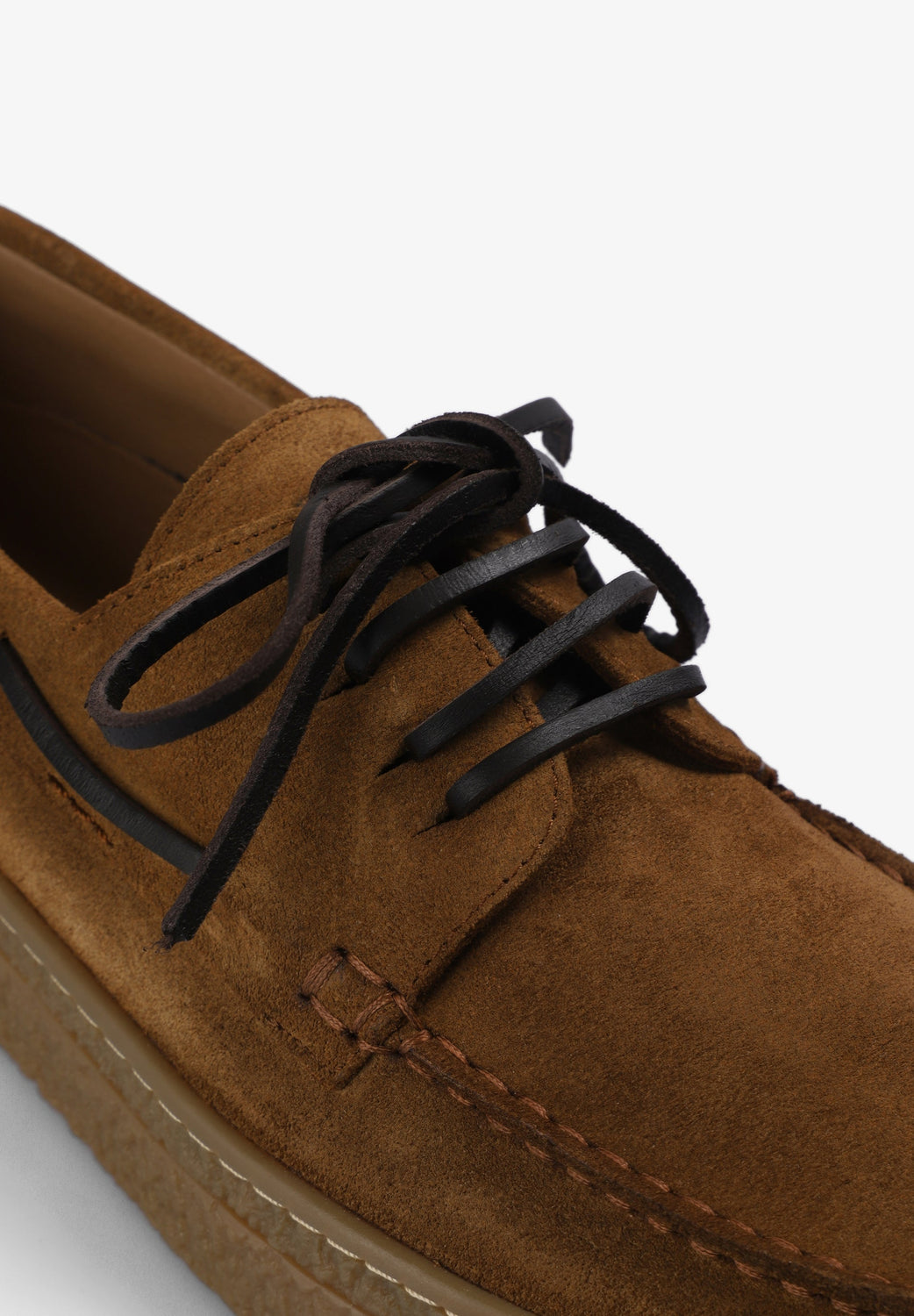 Deck shoes made of 100% cowhide leather. Contrast lace-up fastening Contrast details.