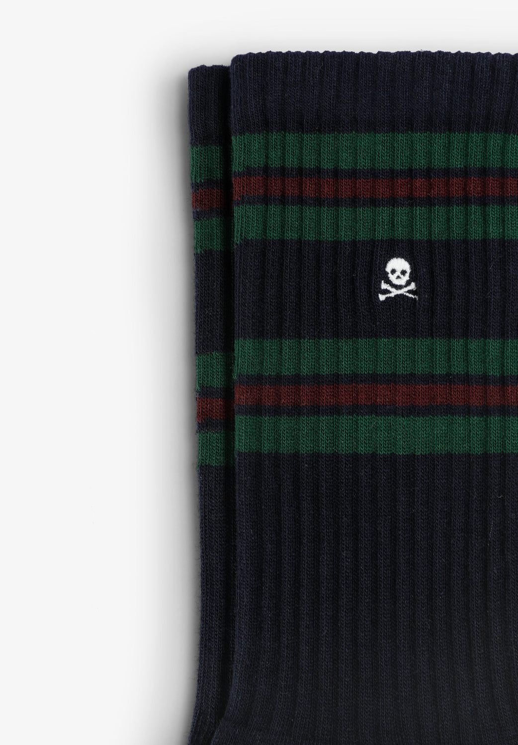 Socks made of an organic cotton blend. Striped detail. Contrast embroidered skull detail.