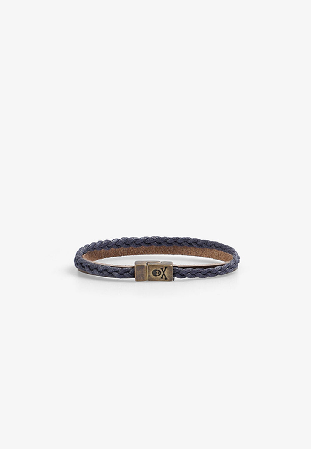 Leather bracelet made of 100% leather and cotton. Metal detail, engraved skull and snap closure.