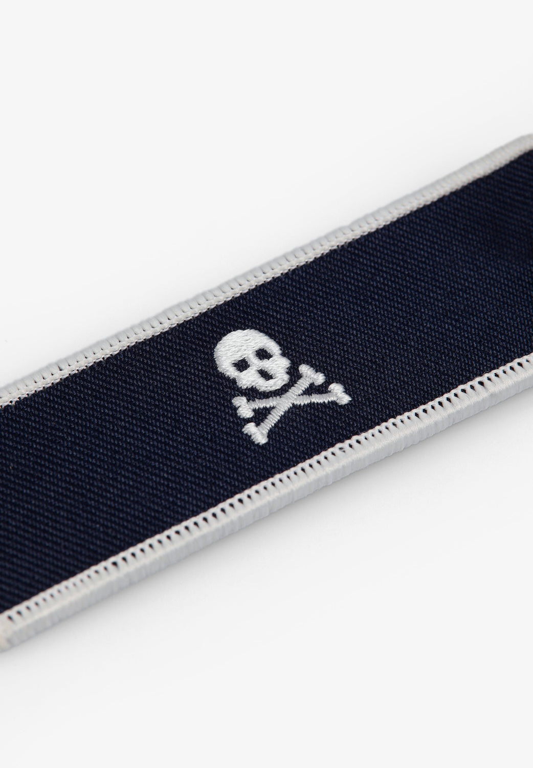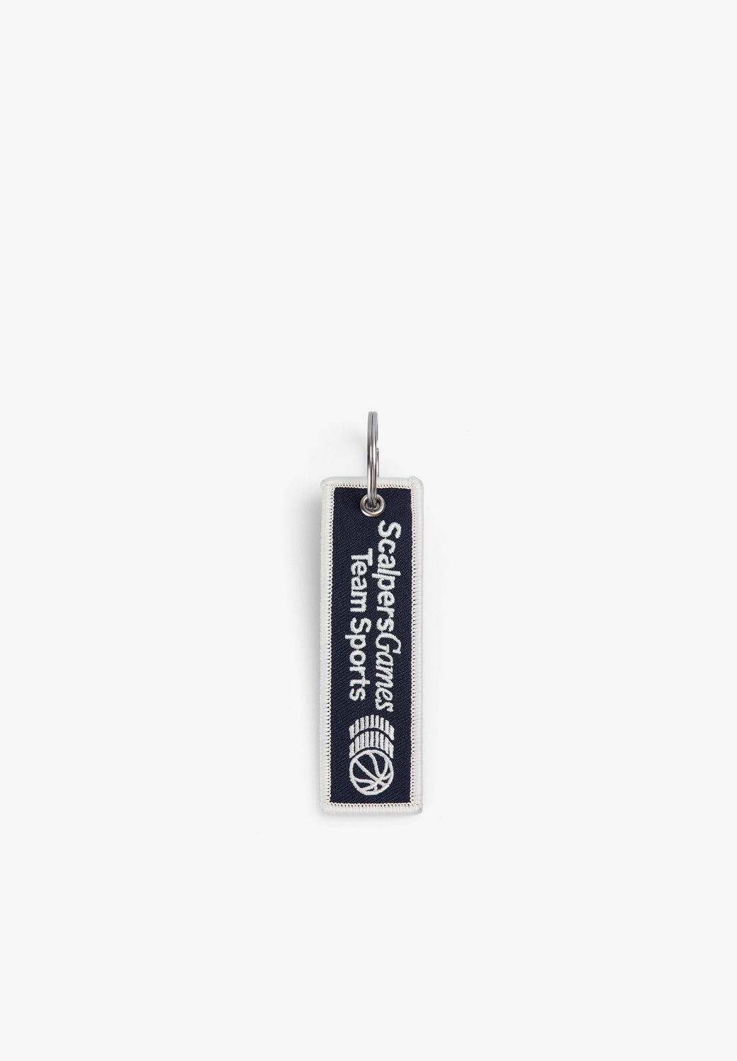 Keychain made of technical fabric engraved with sports motifs. Skull logo on the back.