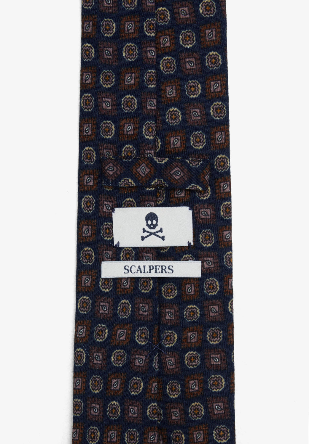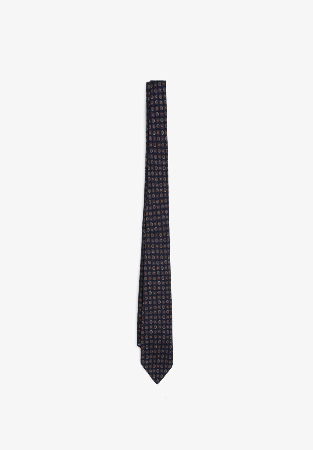 Printed tie made of 100% wool, 9.5 cm wide blade.
