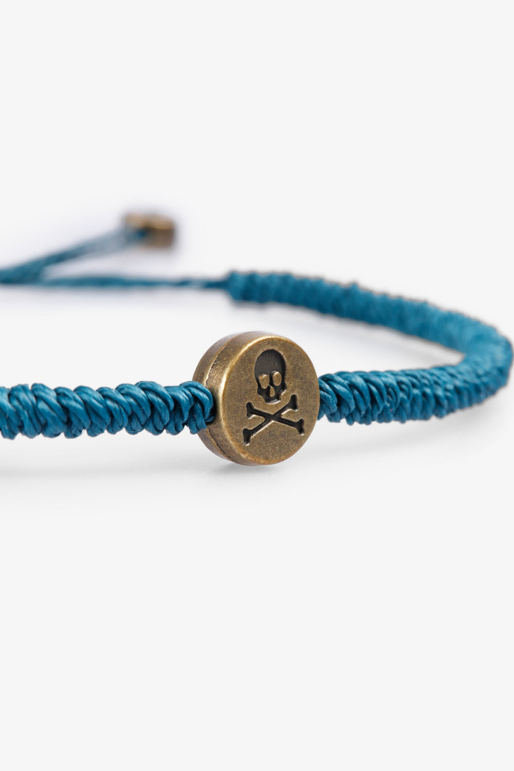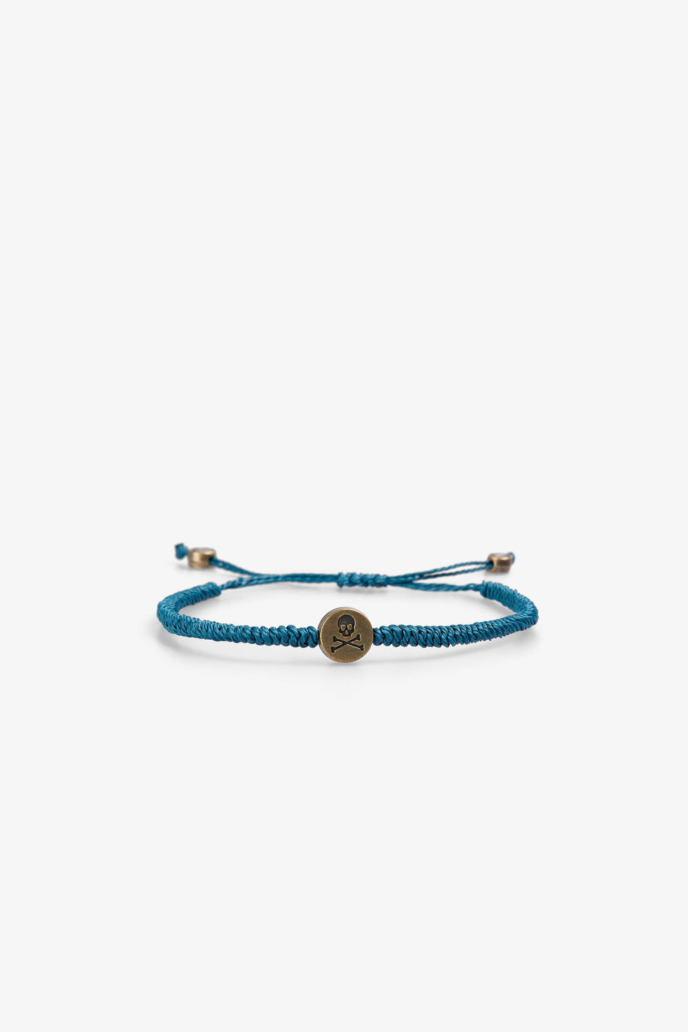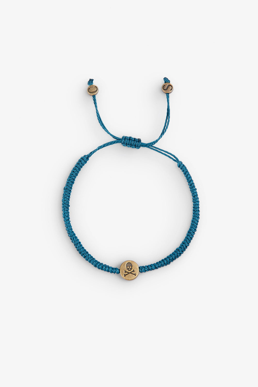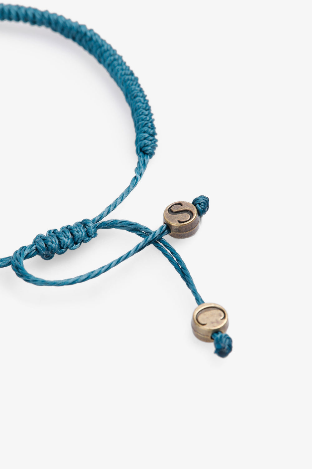 Braided bracelet made of cotton. Metal appliqués with logo. Adjustable wrist fastening with logo detail.