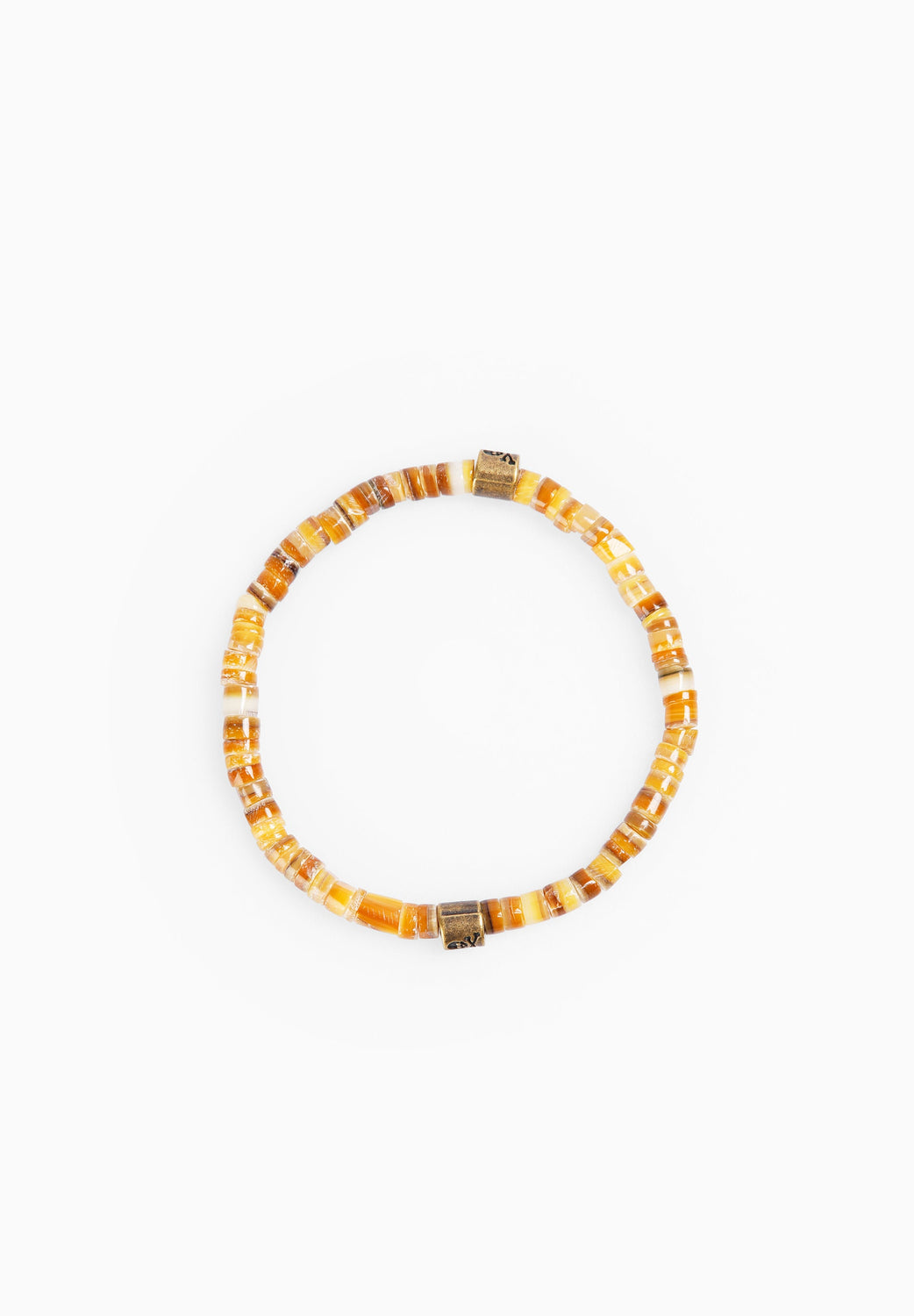Bracelet made of natural stone in different shades. Metal appliqué with logo.