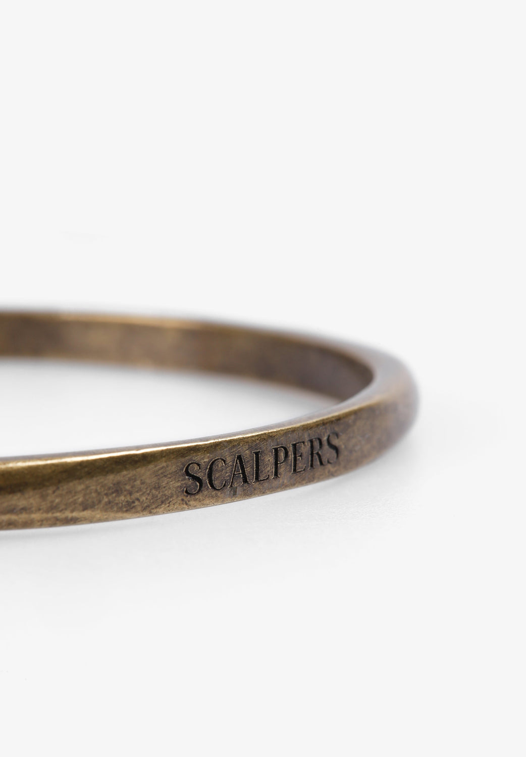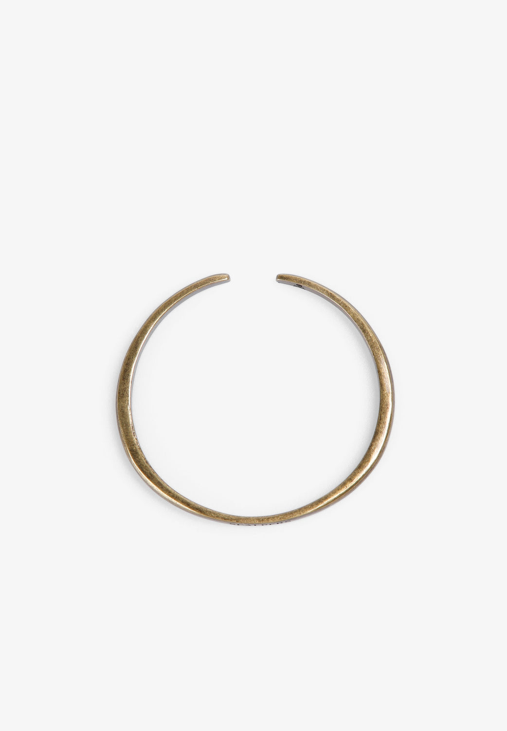 Bracelet made of brass with old gold finish. Logo engraved on front.