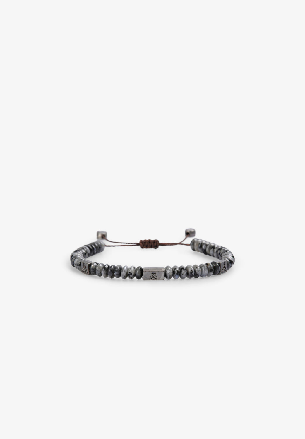 Bracelet made of natural stone. Metal appliqués with logo. Adjustable wrist fastening.