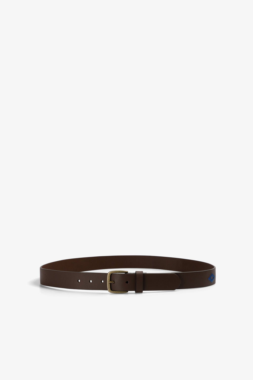 Belt made of 100% cow leather. Embroidered with contrast ethnic motifs. Pressed logo detail. Metal buckle.