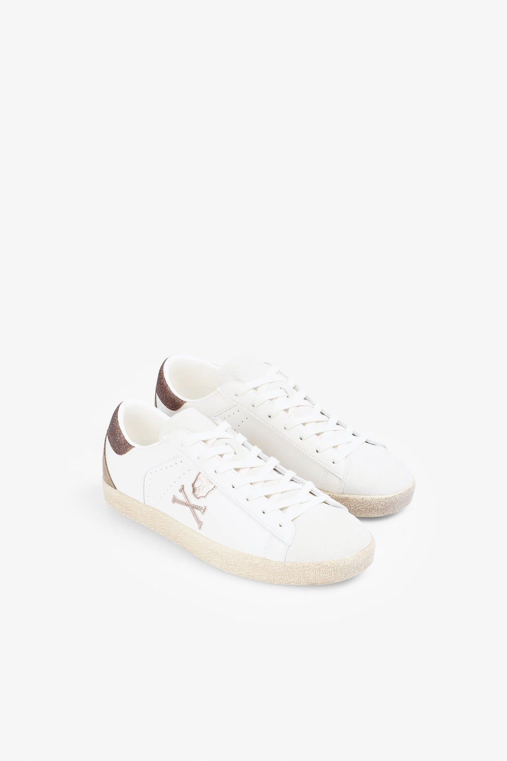Sneakers made of 100% leather. Contrast embroidered skull on side. Contrast rubber sole. Contrast heel with matching embroidered logo. Matching lace-up fastening.