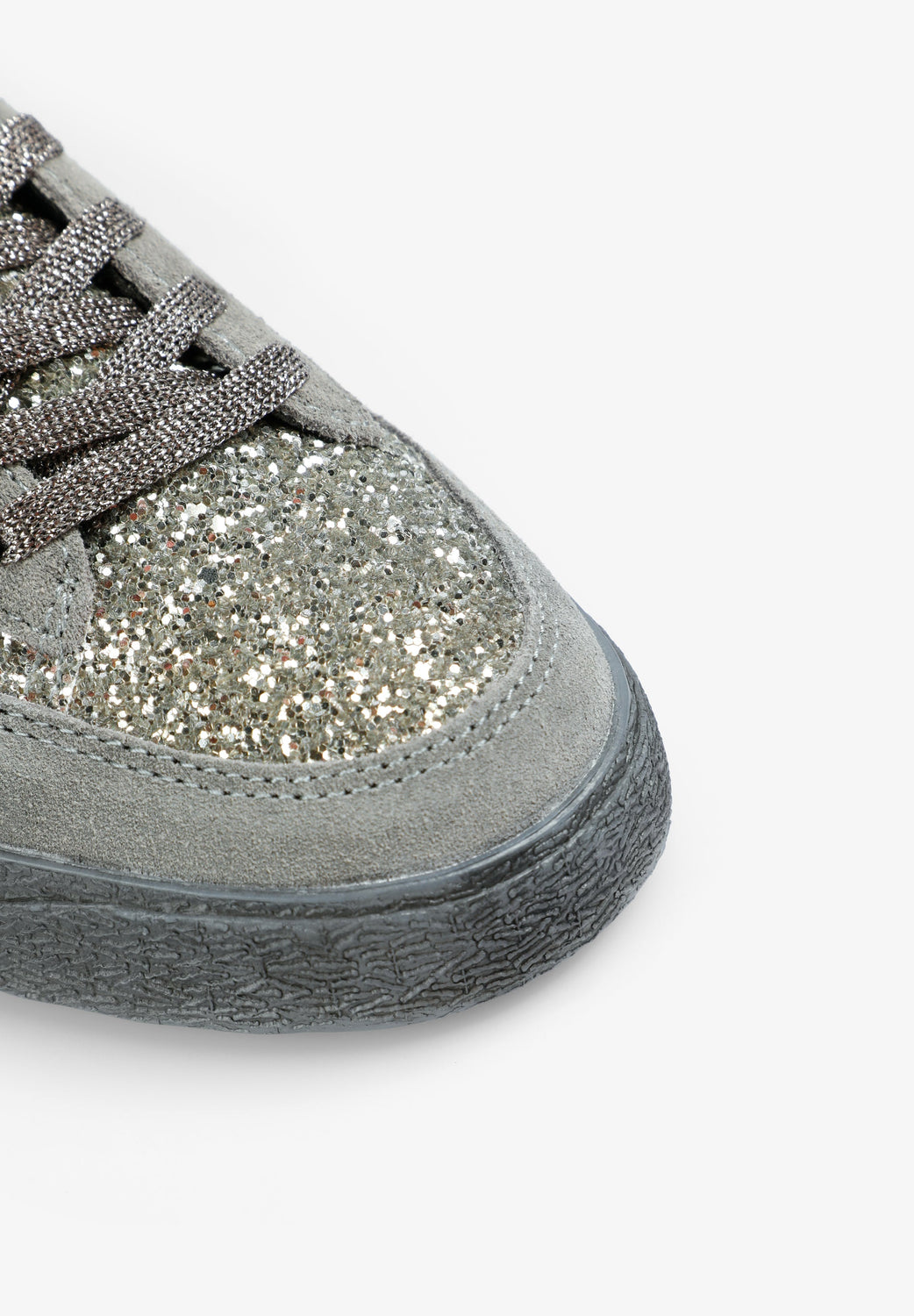 Suede sneakers. Glitter. Contrast embroidered skull on side. Lace-up fastening. Contrast heel with matching embroidered logo. Contrast rubber sole.