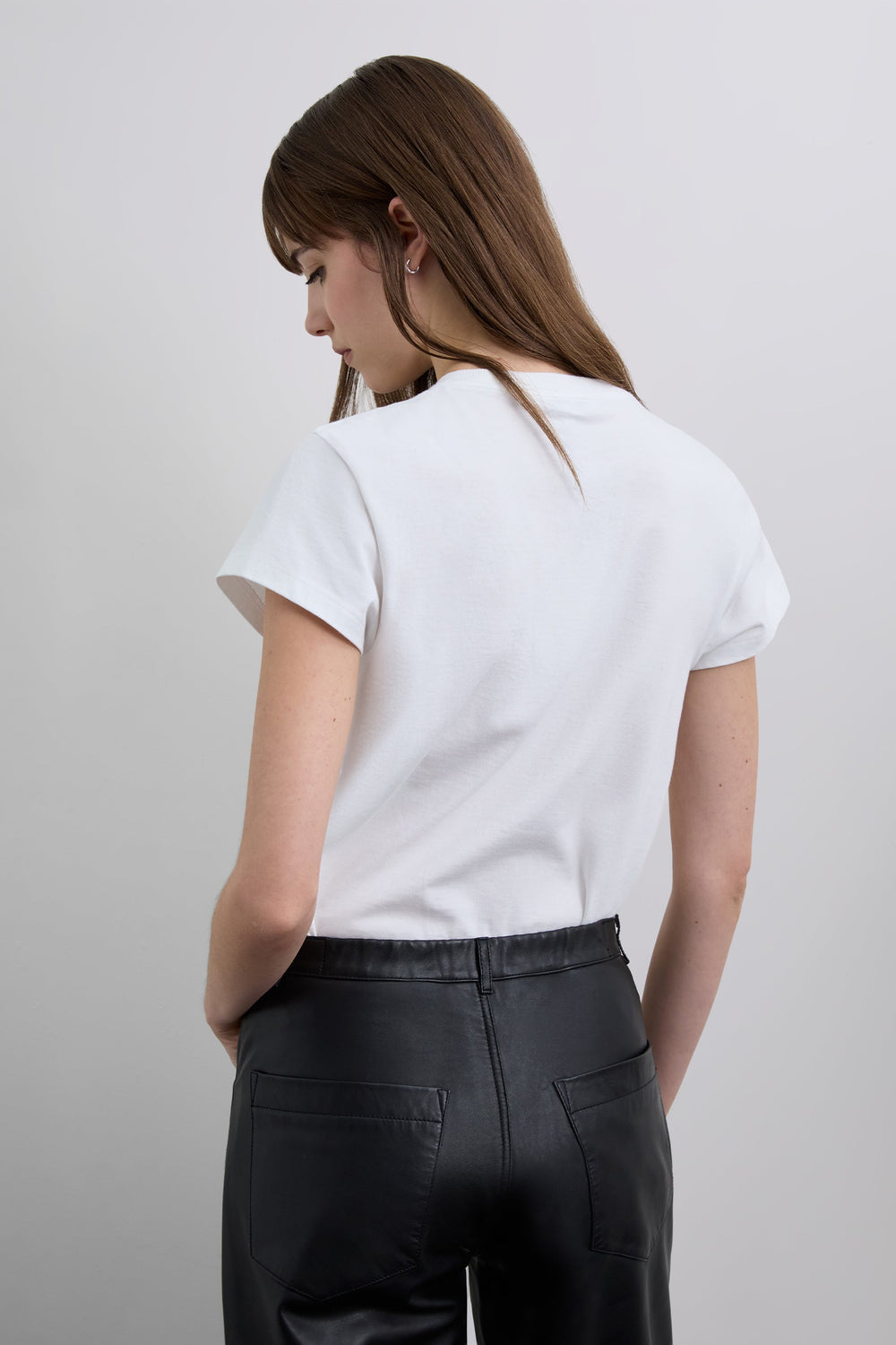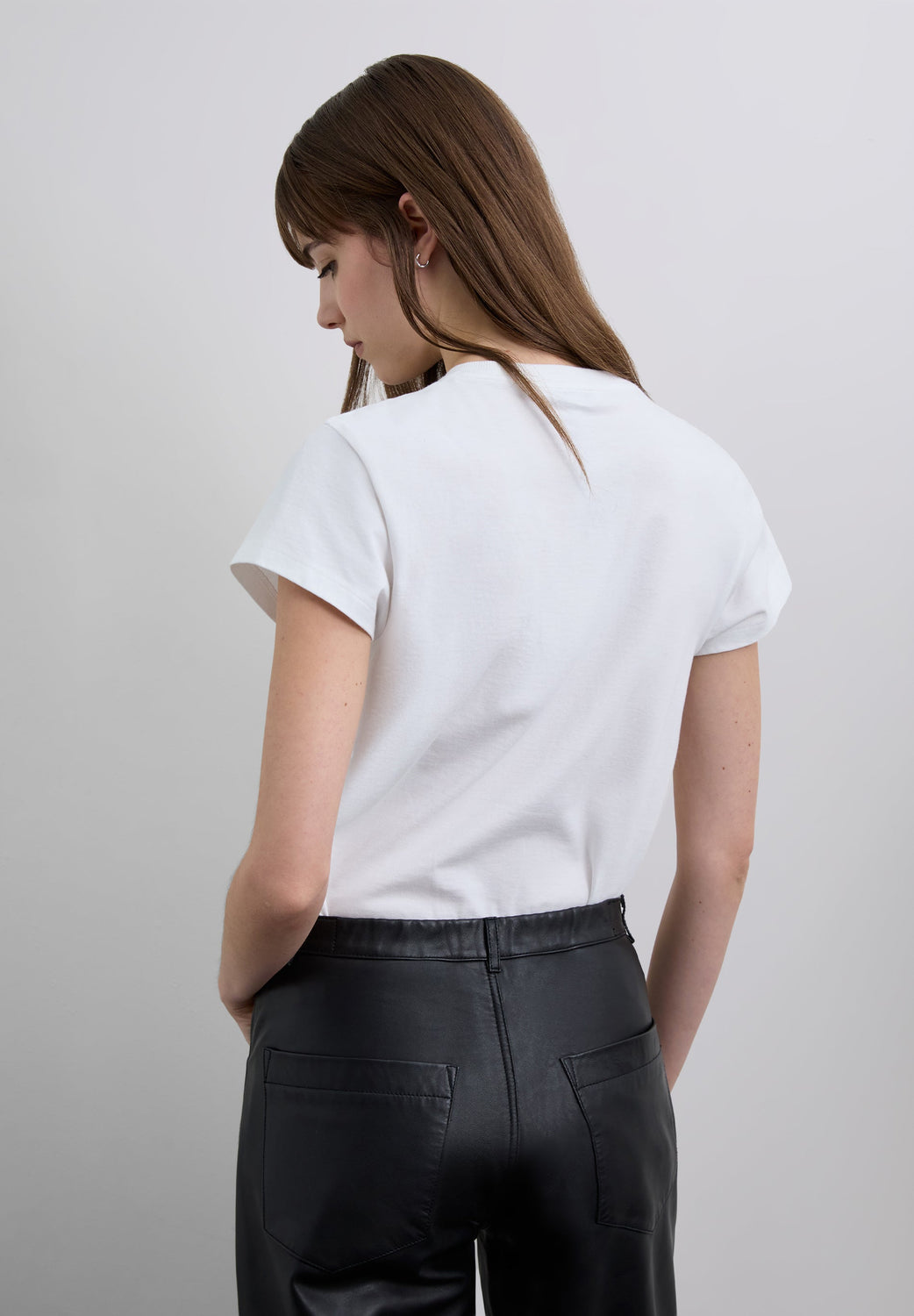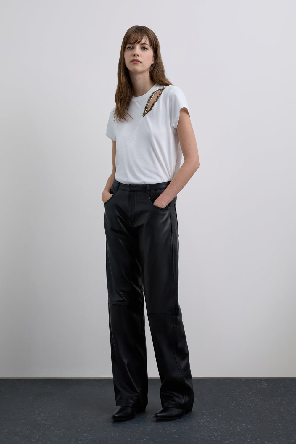 Regular fit T-shirt with round neck and short sleeves. Cut-out detail with embellishment on the front.