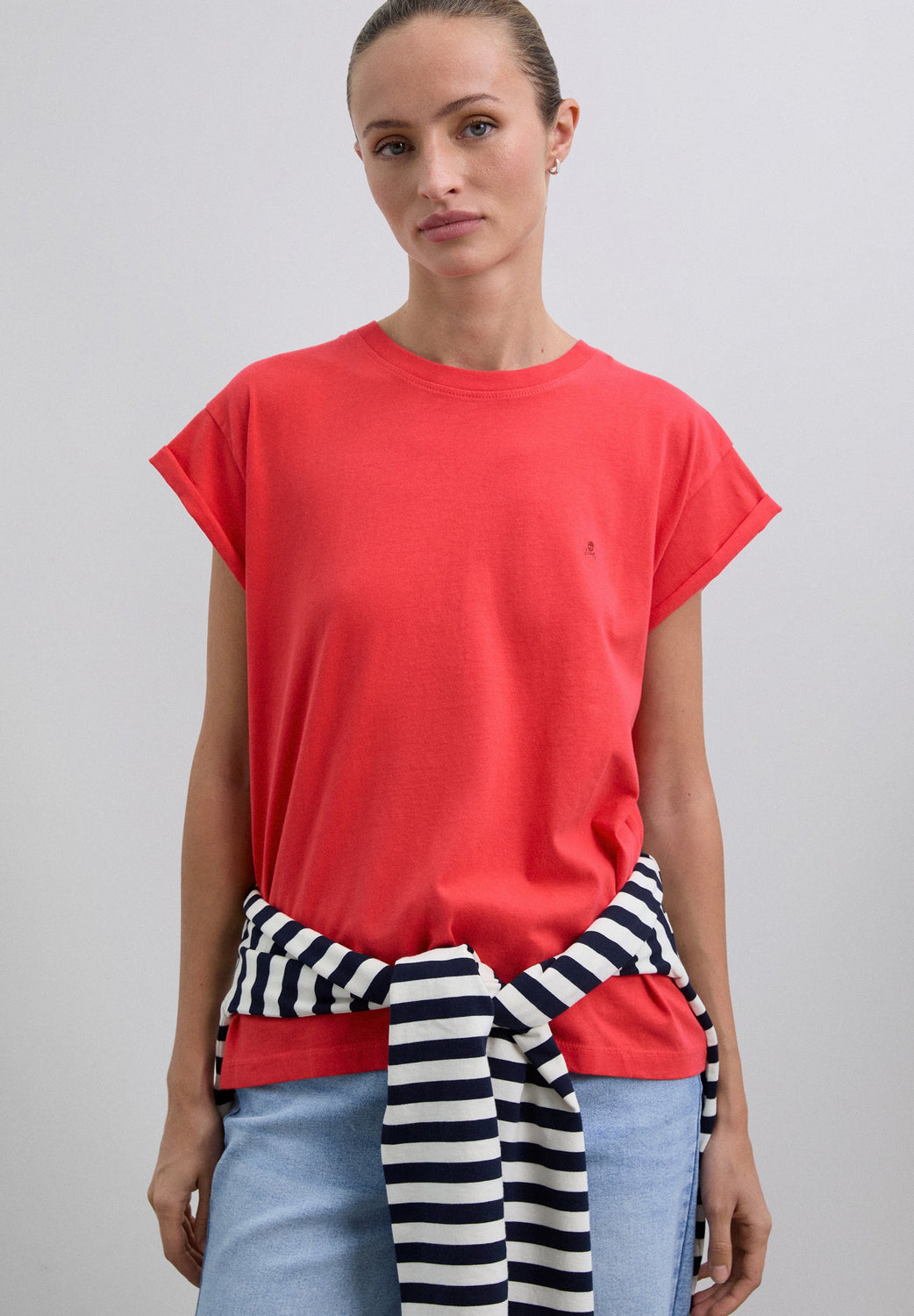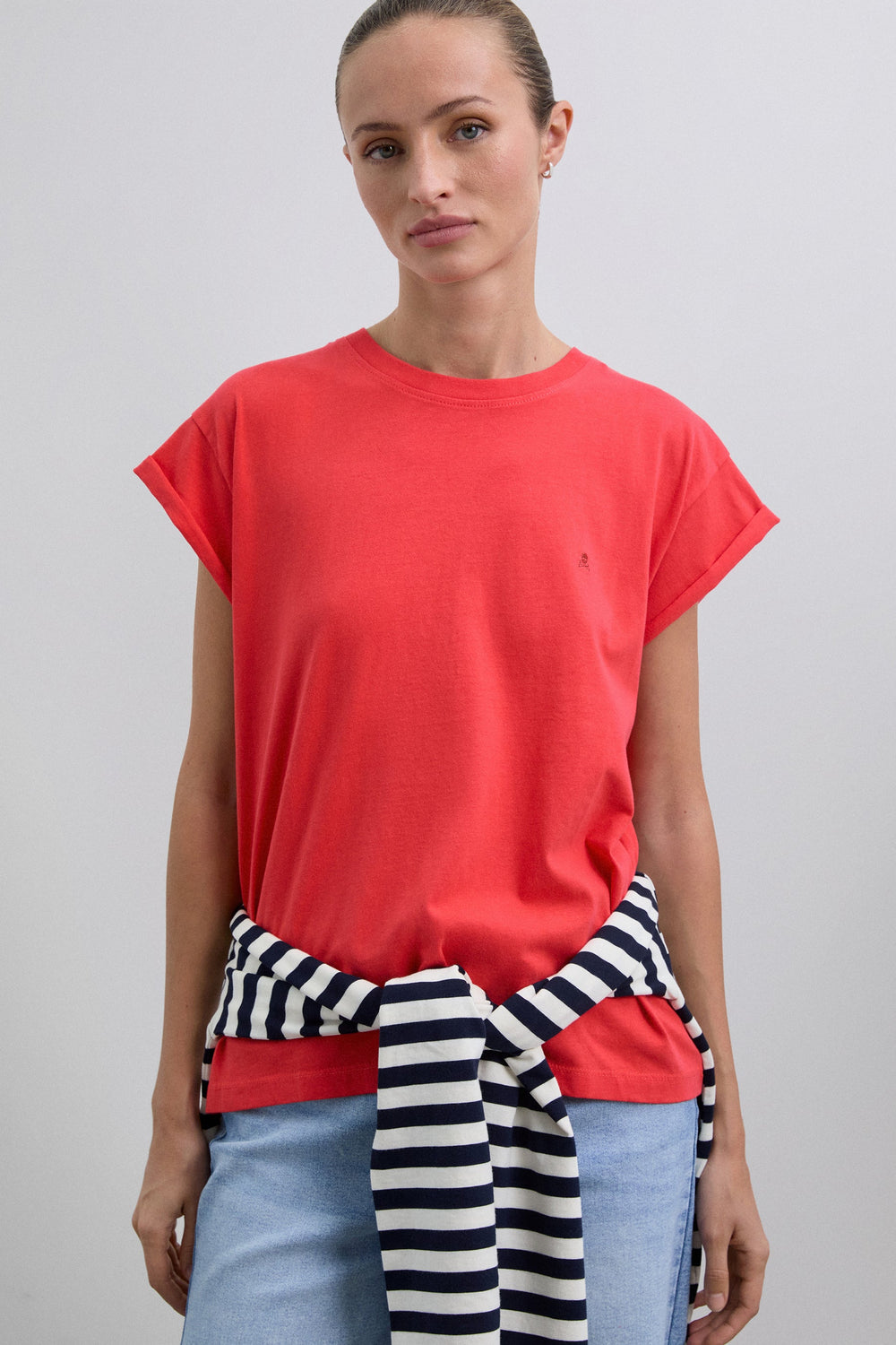 T-shirt made of 100% organic cotton. Regular fit, round neck and sleeveless. Matching embroidered logo detail on the chest.