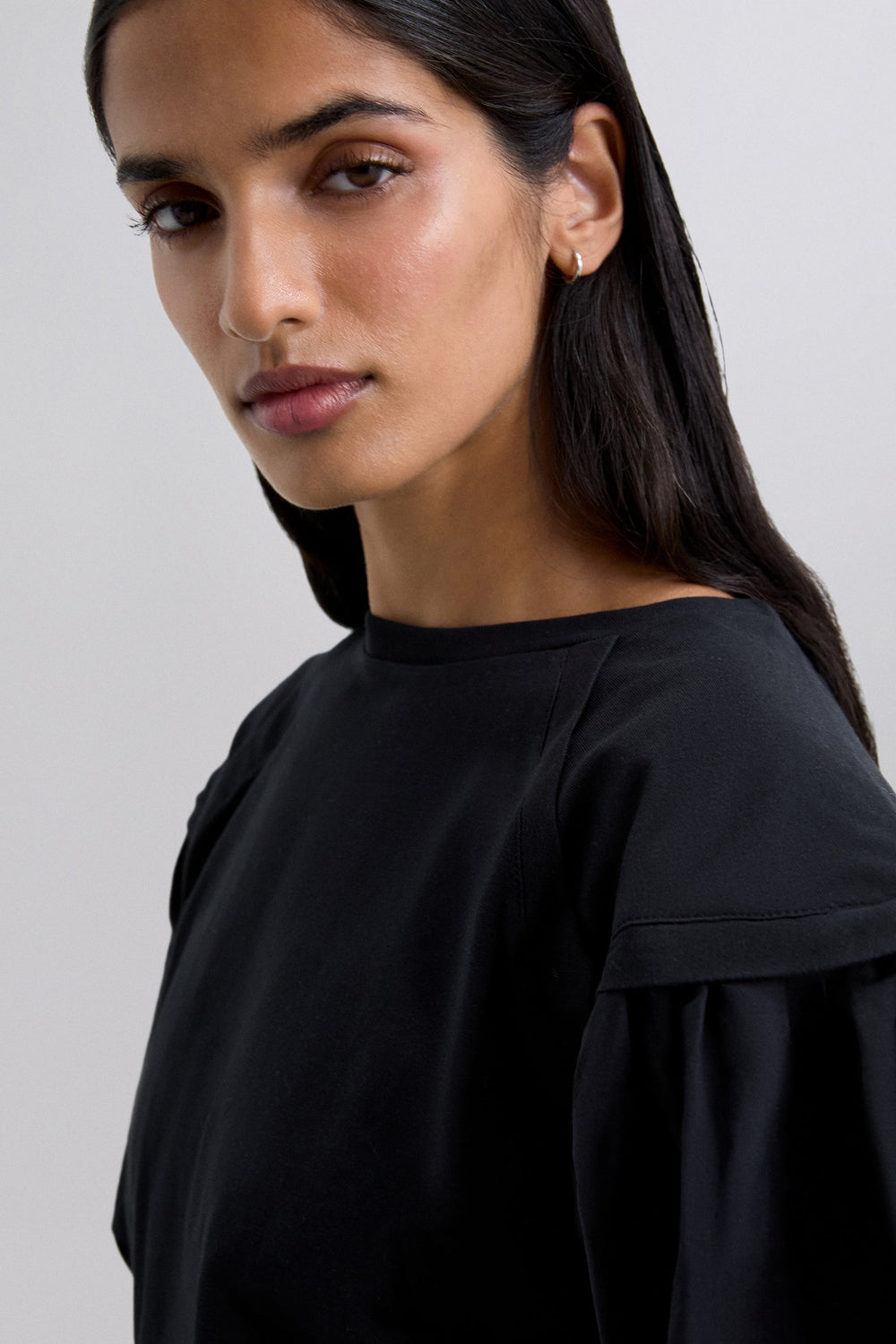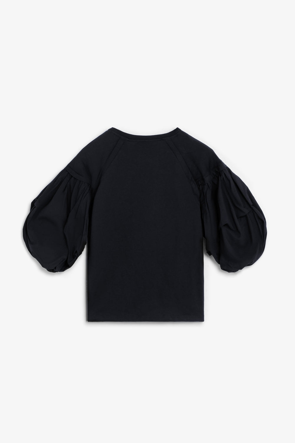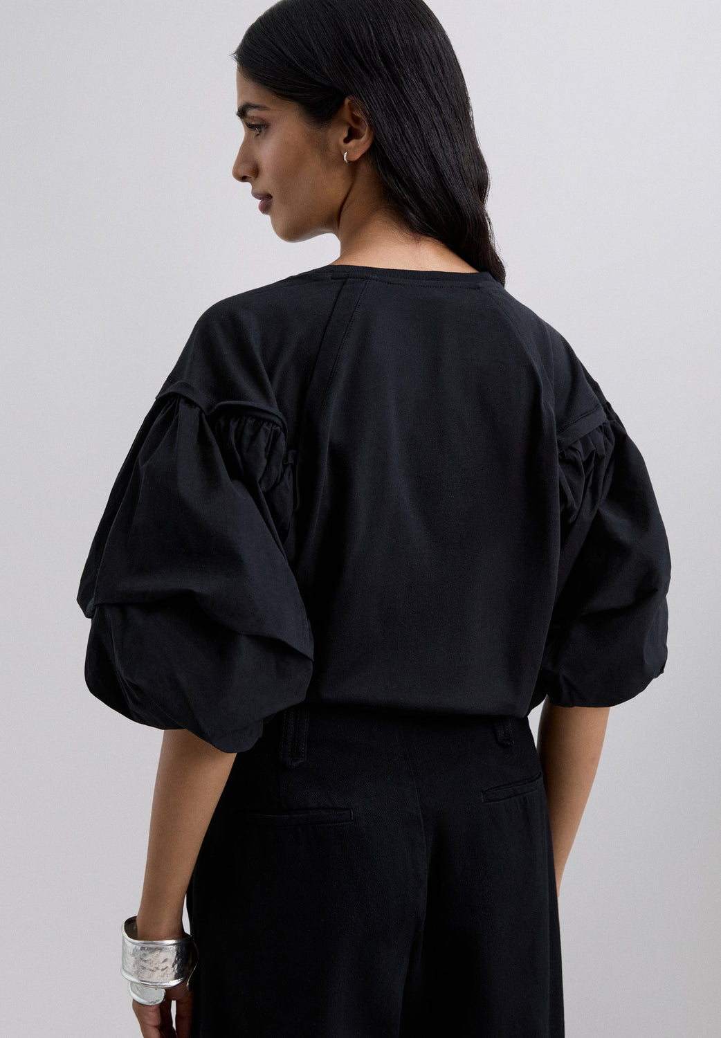 T-shirt made of 100% BCI cotton. Regular fit, round neck and long puff sleeves.