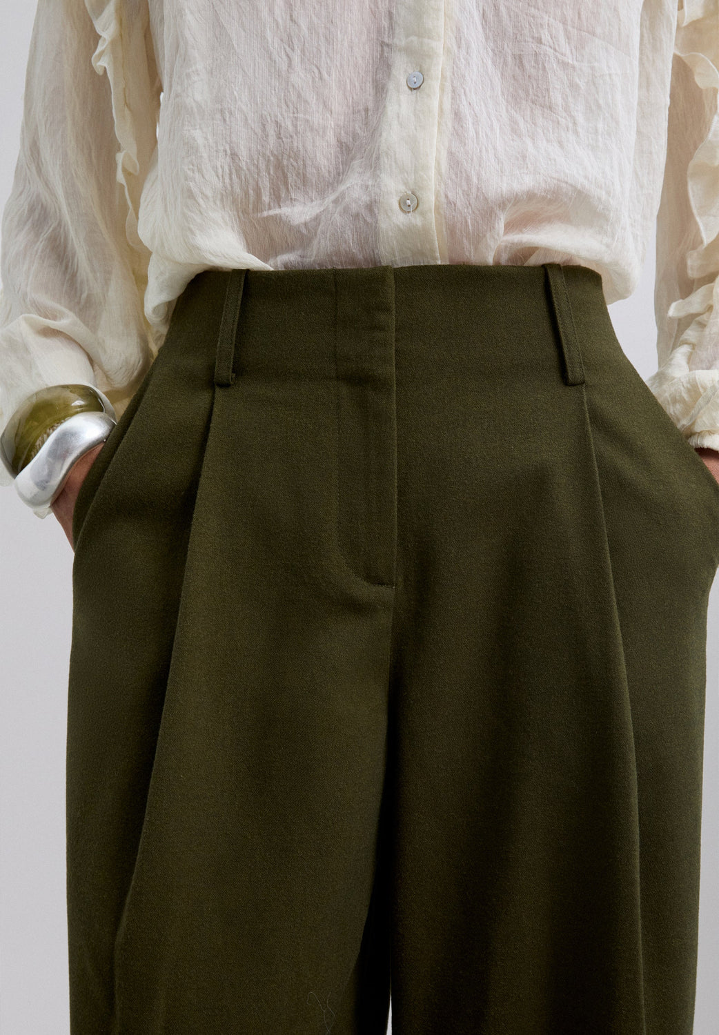 Darted trousers made of a slightly stretchy viscose blend fabric. Regular fit. Full Length. Belt loops at the waist. Zip and concealed hook fastening. Side slanted pockets and two welt pockets at the back.