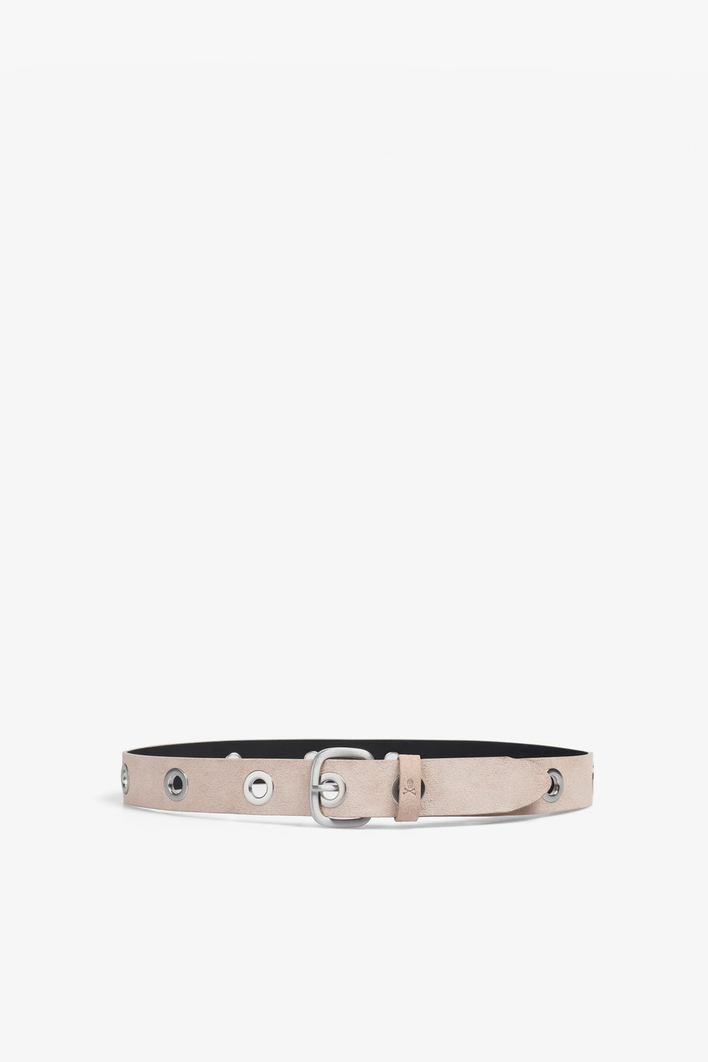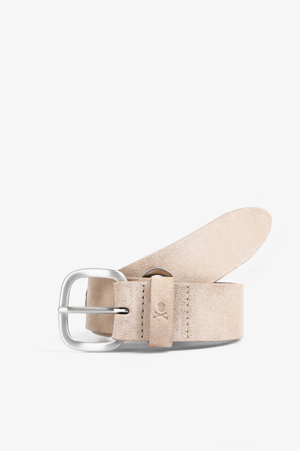 Leather belt. Adjustable metal buckle fastening. Matching embroidered skull detail.