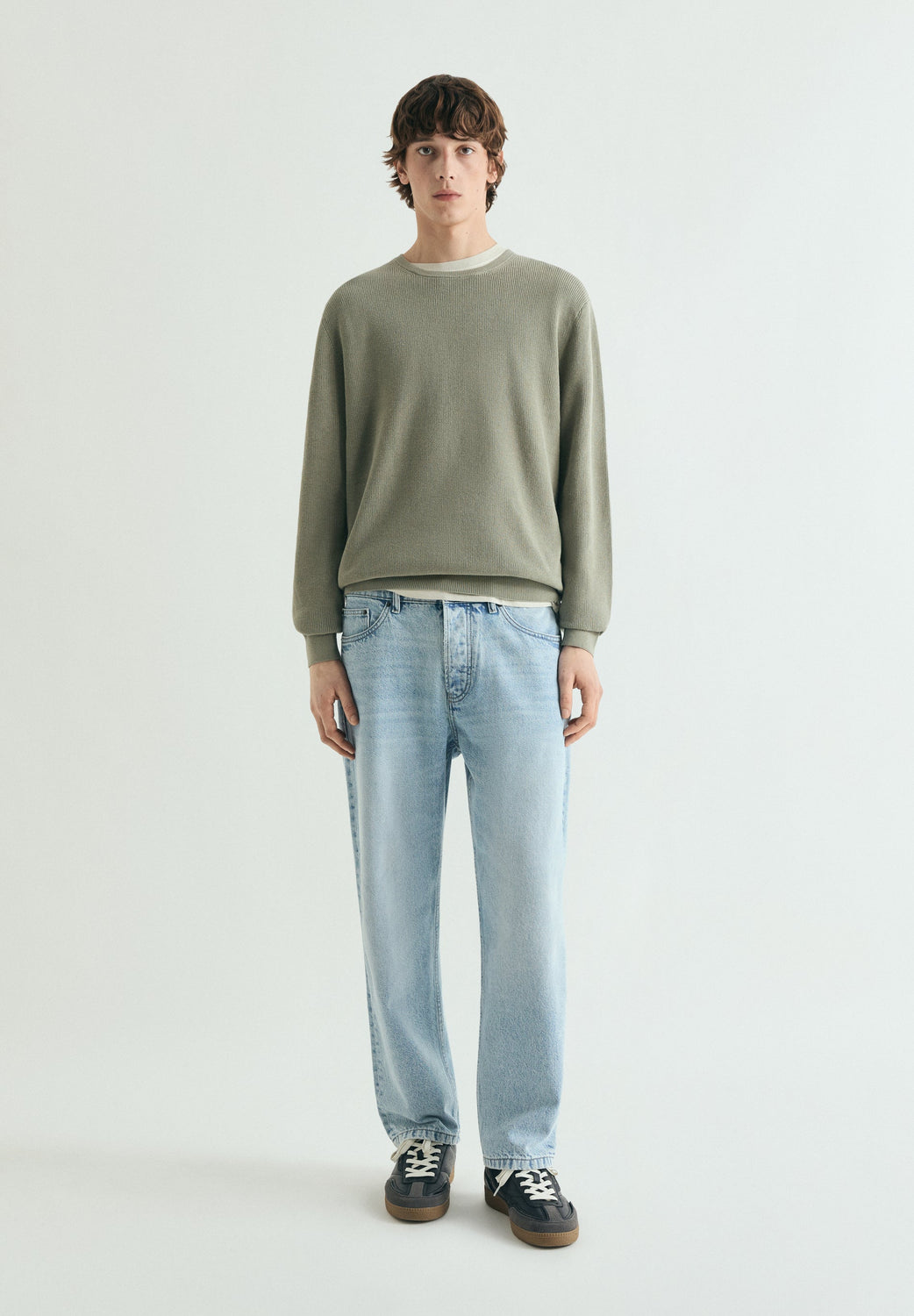 Knit sweater made of 100% BCI cotton. Textured finish. Round neck. Label detail on the left side-