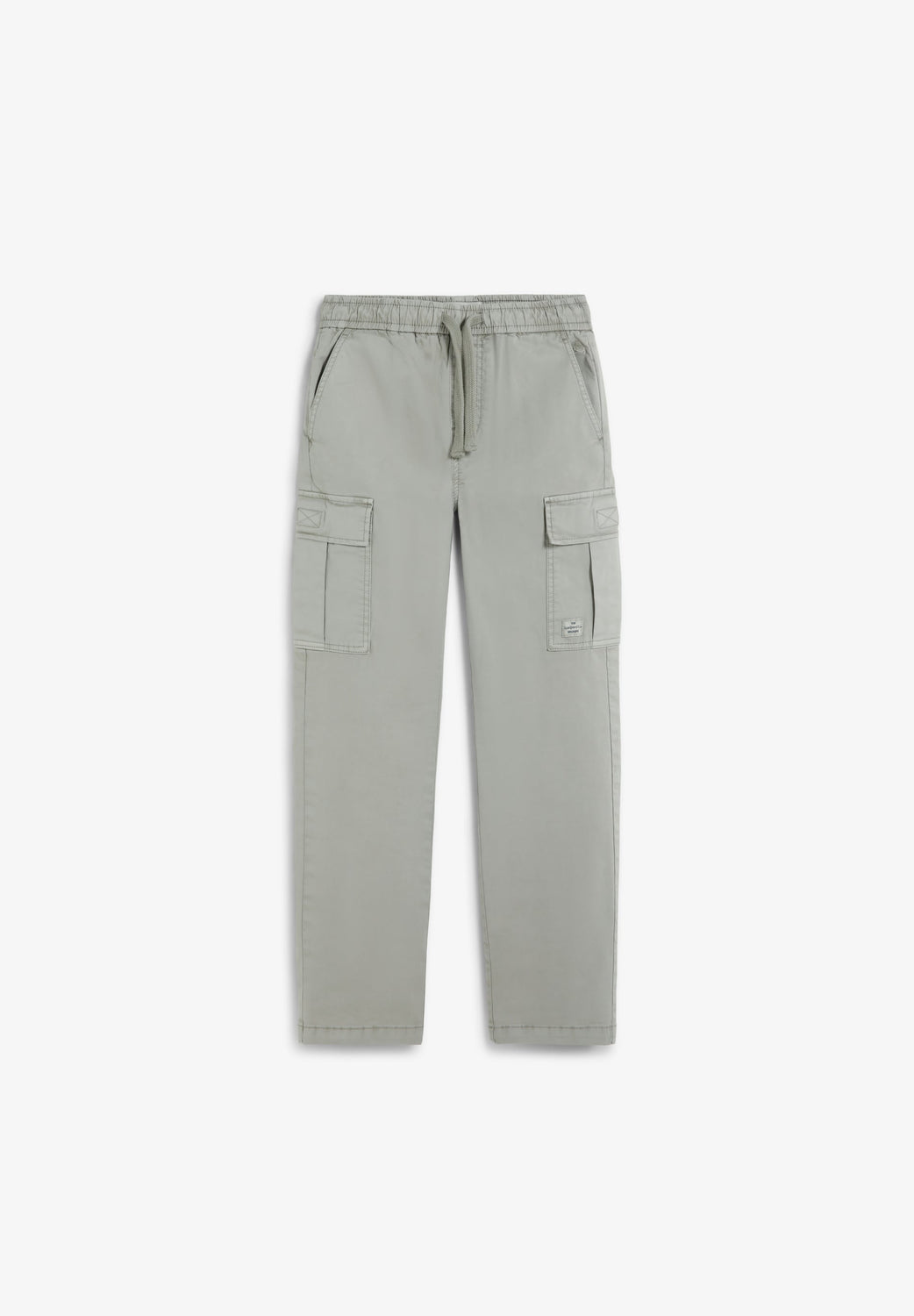 Cargo trousers made of a cotton blend. Elastic waistband with adjustable drawstring Side pockets with flap and back pockets. Straight leg.