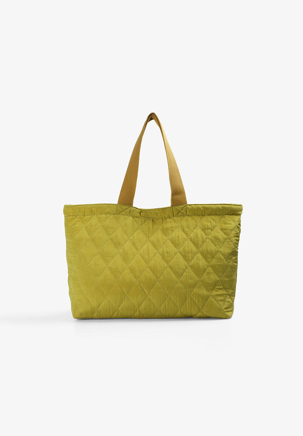 Tote bag with diamond shaped quilting and embroidered logo detail on the front. Long straps for carrying over the shoulder. Velcro fastening. Lined interior with flat inside pocket.
