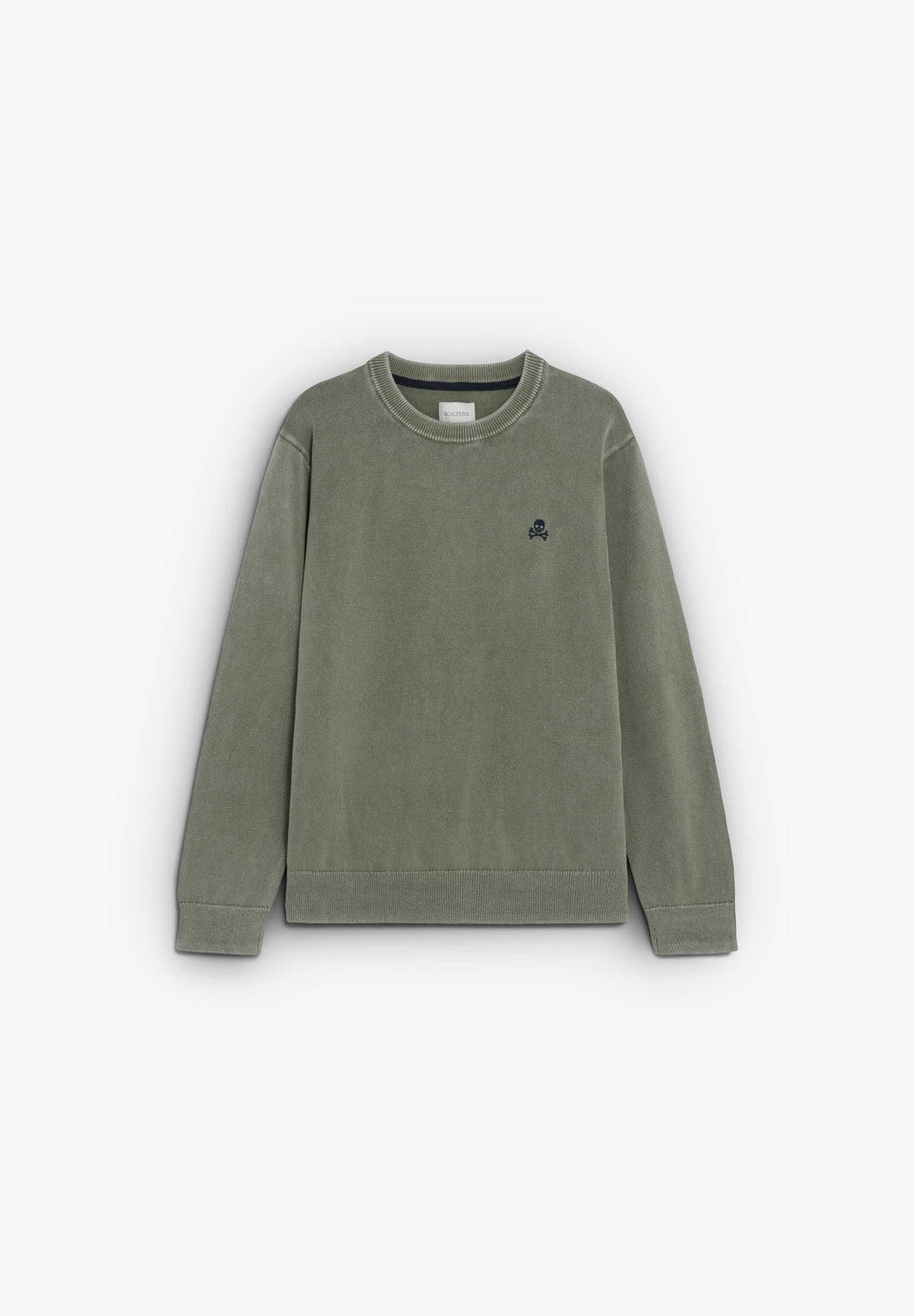 Knit sweater made of 100% BCI cotton. Round neck design and smooth finish. Embroidered logo detail on the chest. Ribbed collar, cuffs and waistband.