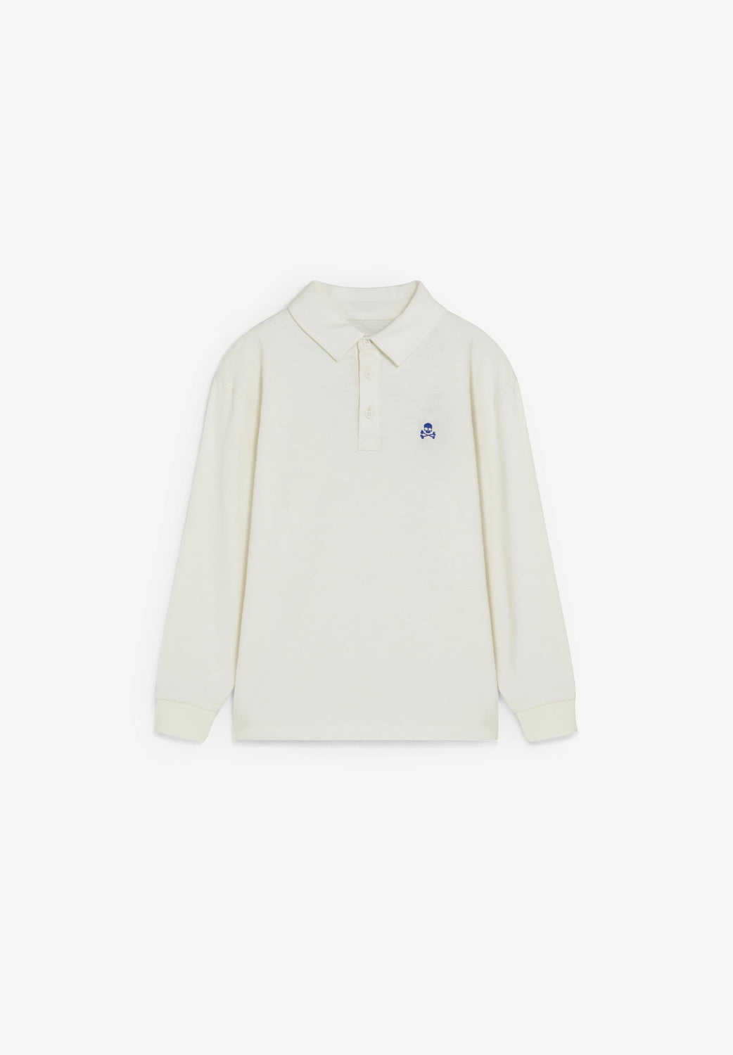 Long sleeve polo shirt made of 100% BCI cotton. Classic collar and button fastening. Back print and contrast logo detail on the chest.