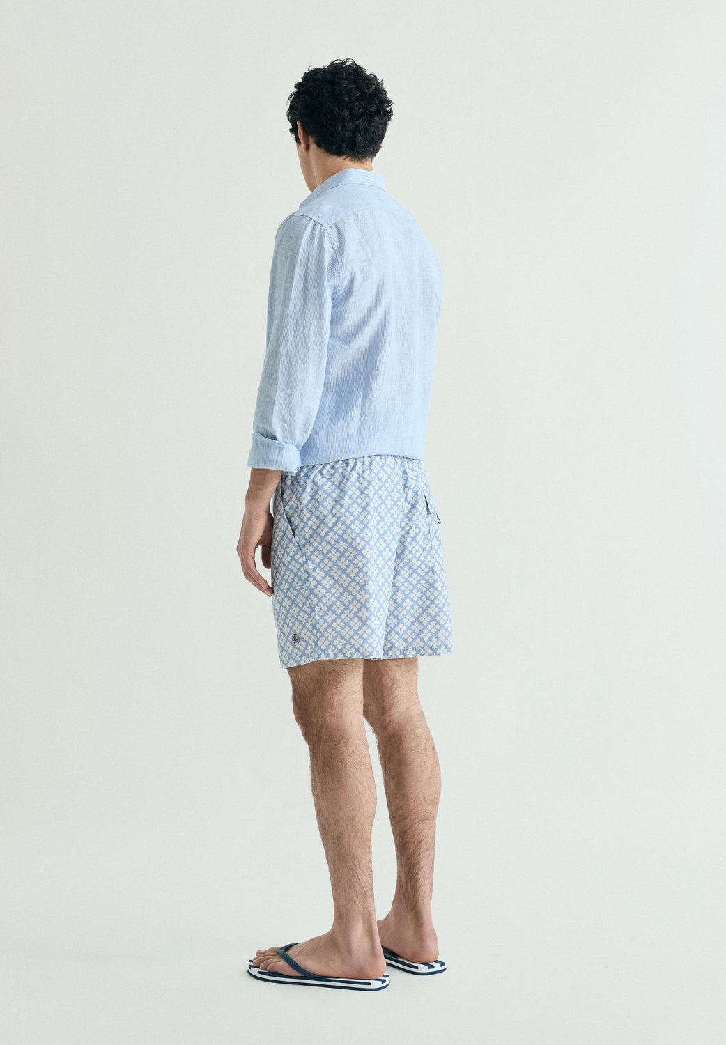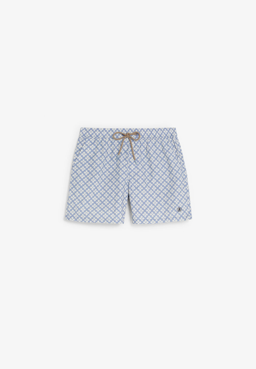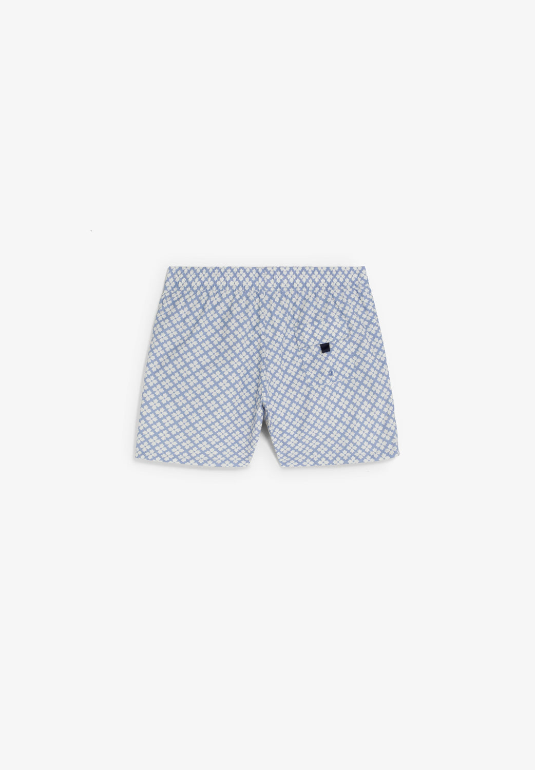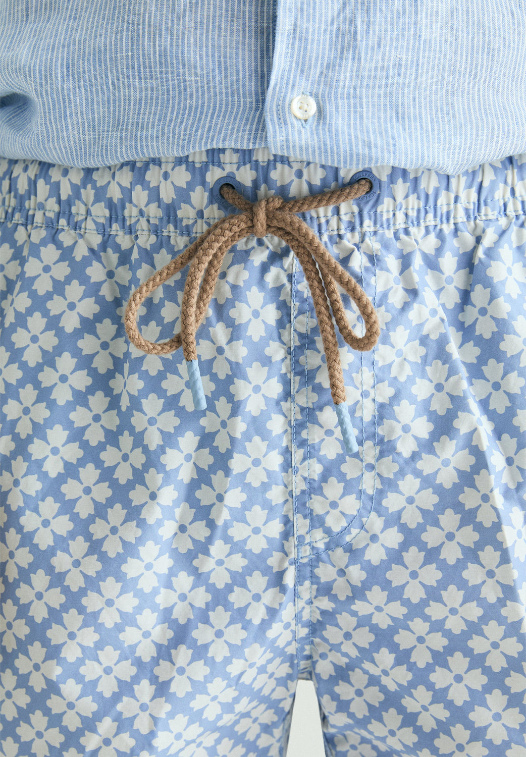 Swimming trunks with elasticated waistband and drawstring. Side pockets. Contrast print. Back pocket. Skull patch detail on the hem.